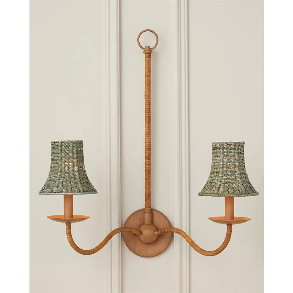 Reese Coastal Beach Light Teal Seagrass Tapered Chandelier Shade
