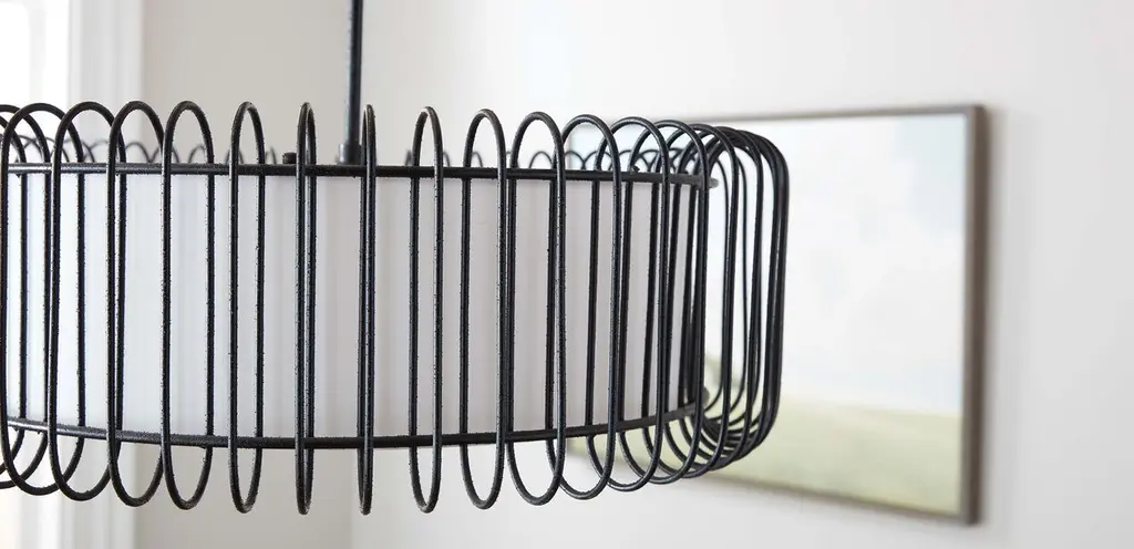 We wrapped the traditional drum chandelier in vertical metal rings to give it a distinctly industrial spin. A molé-black textured finish makes our Reese chandelier supremely versatile.