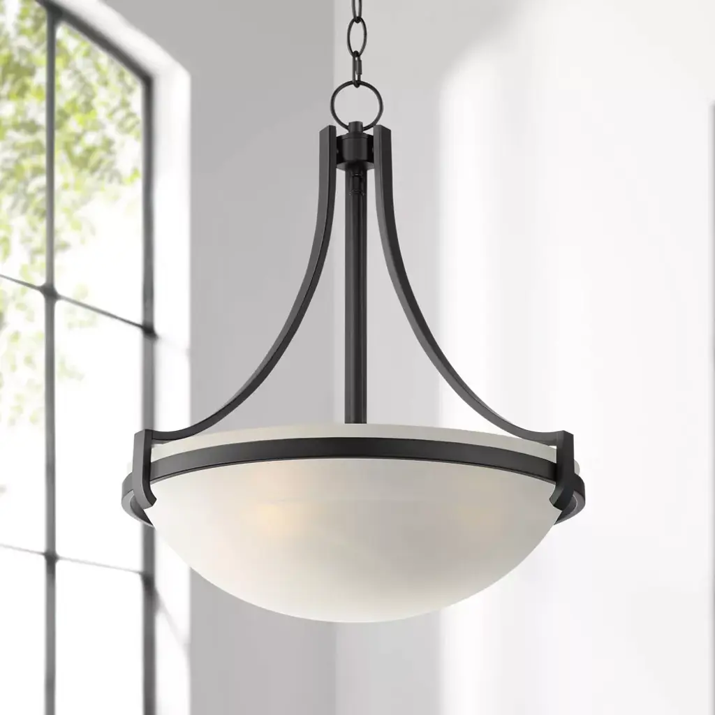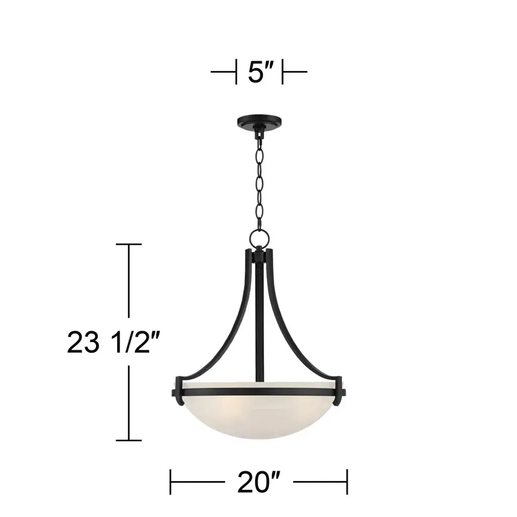 Regency Hill Black Metal Pendant Chandelier 20" Wide Modern Marbleized Glass Bowl Shade Fixture Dining Room House Foyer Entryway
