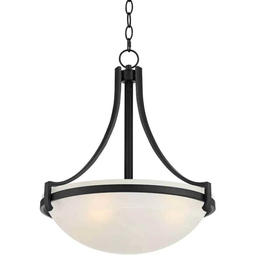 Clean curves create an appealing silhouette for this modern four-light marbleized glass pendant from Regency Hill. It shows off a simple framework crafted in metal with a crisp black finish. The bowl shade features marbleized glass that ensures soft, diffused lighting in any room.