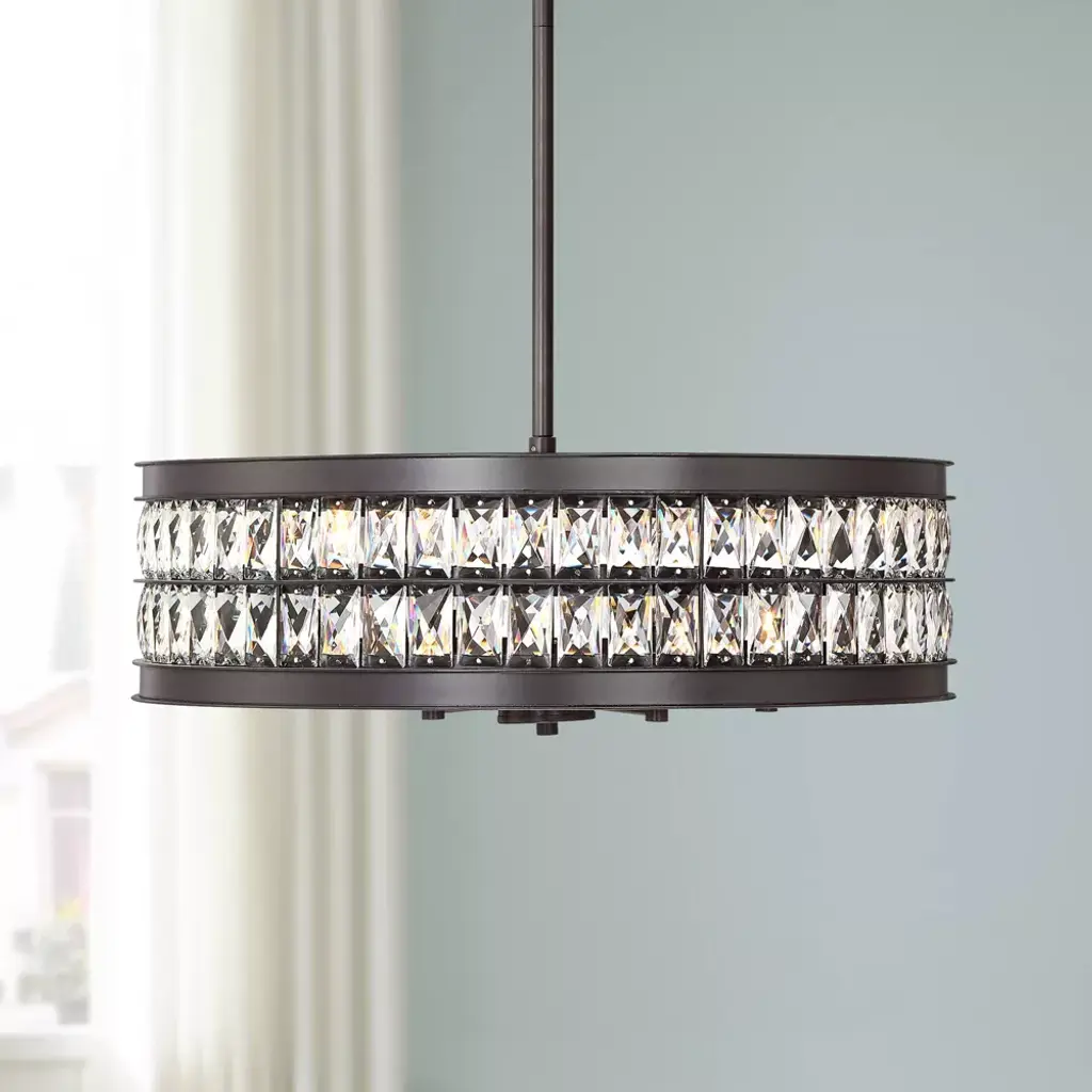 Regency Hill Oil Rubbed Bronze Pendant Chandelier 23 1/2" Wide 6-light Drum Clear Crystal Dining Room House Foyer Kitchen