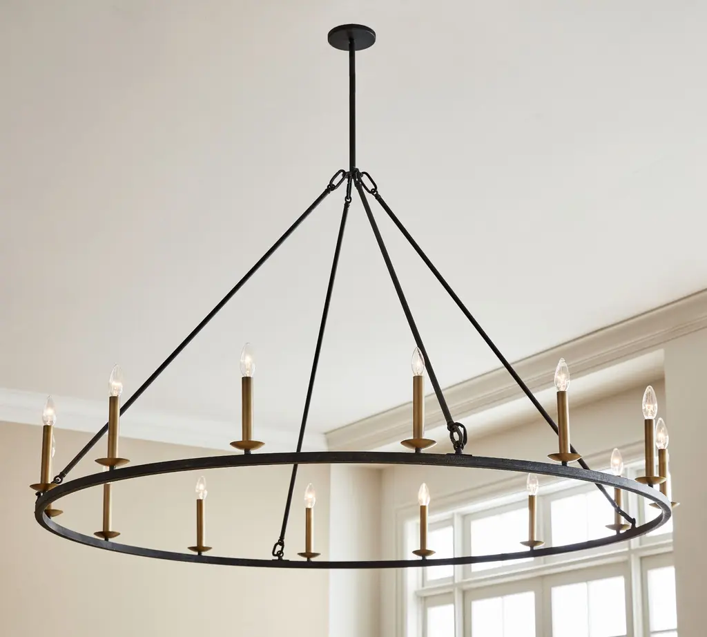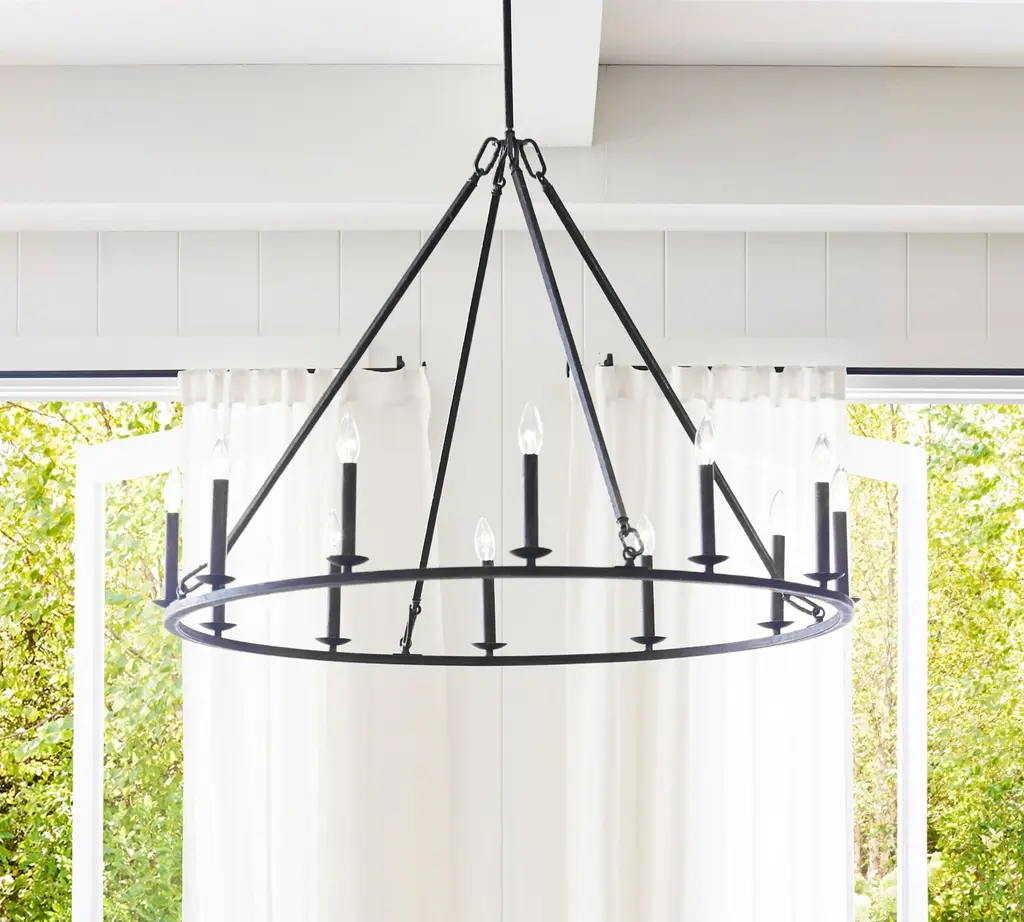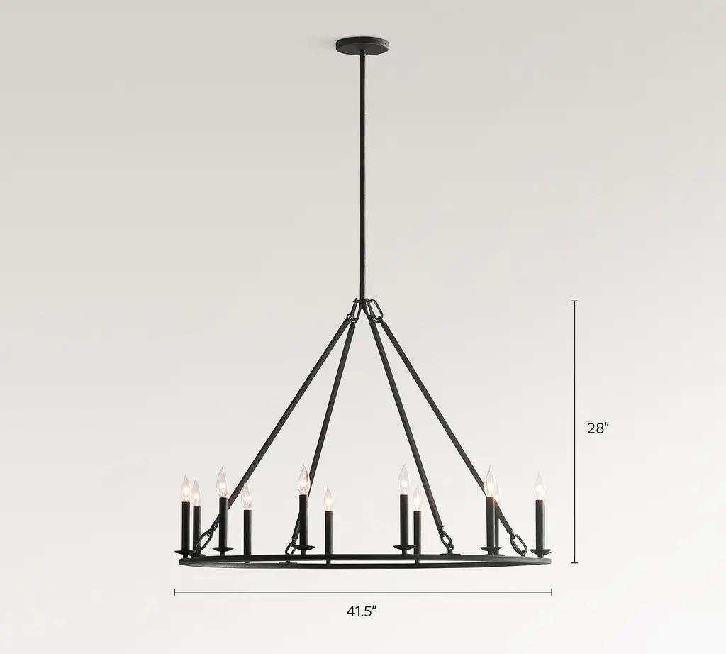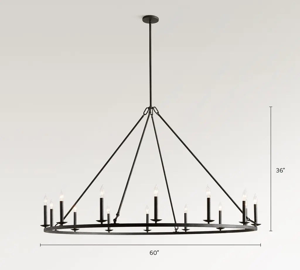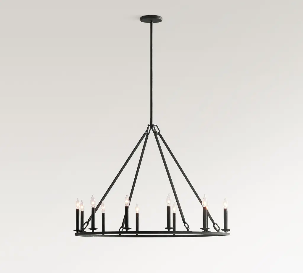 Inspired by candelabra chandeliers once common in the great rooms and dining halls of America's historic lodges, the Remington Lighting Collection makes a grand statement in the modern home. This chandelier's forged ring is held in place by distinctive rods and links, and the candle-style lights provide a warm, inviting glow.