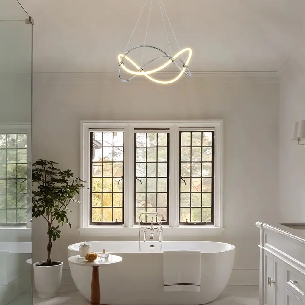 Elevate your interior with this modern arc-shaped Linear LED Chandelier. Designed with a sculptural silhouette, the 25" aluminum body blends soft curves with sharp lines, ideal for dining areas or entryways. Enjoy personalized ambiance with its dimmable lighting, casting warm 3000K glow and high 80 CRI for natural color rendering. This chandelier is not only sleek and stylish but also environmentally friendly and built for lasting use. Arrives with complete hardware for a quick and easy installation. Whether illuminating a minimalist loft or a modern family home, this aluminum chandelier offers both form and function with sustainable design in mind.