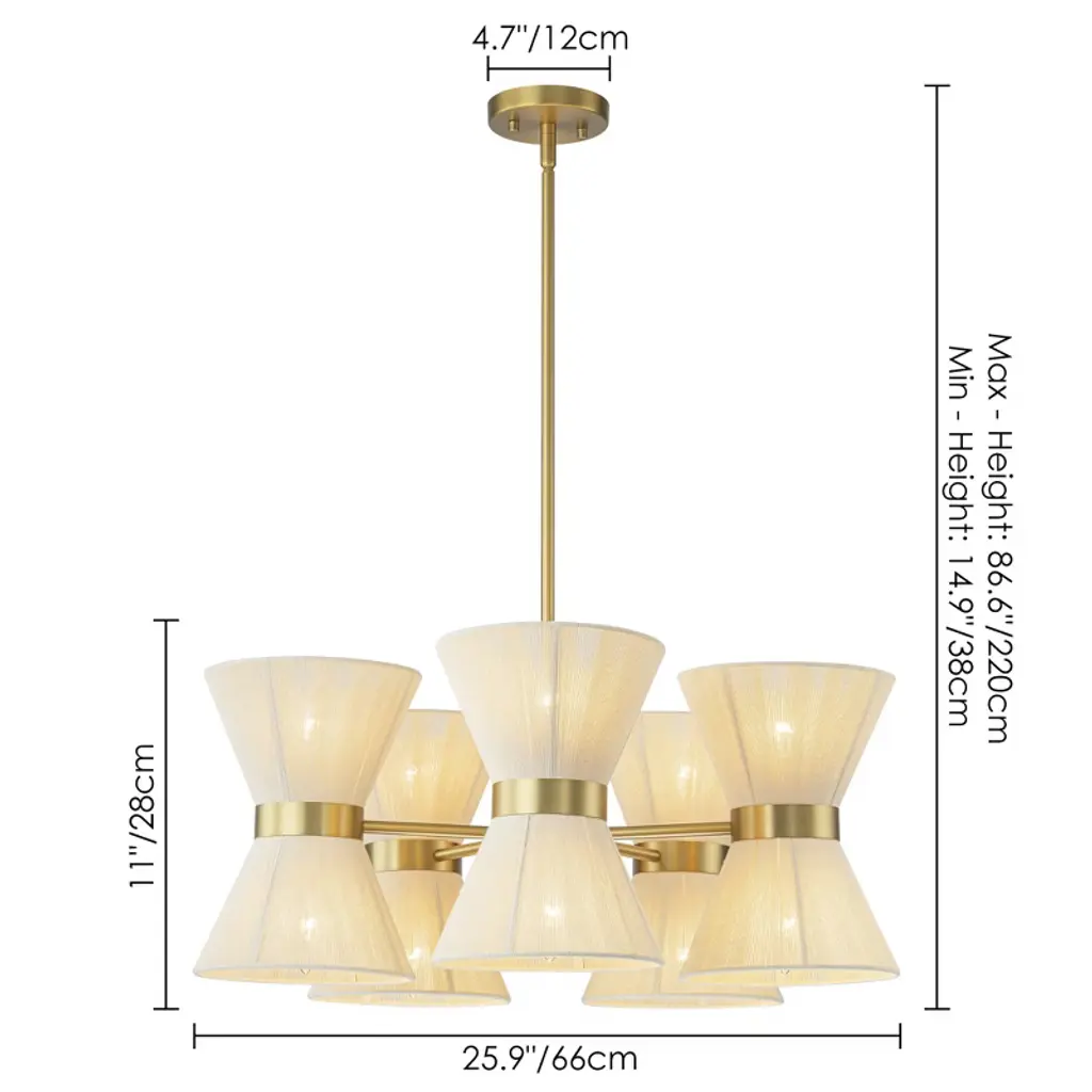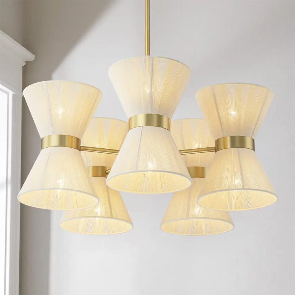 Bring natural texture and soft curves into your space with this 26-inch boho chandelier. Featuring an elegant hourglass silhouette and flared woven rattan shades, it adds breezy charm to dining rooms, bedrooms, or entryways. Ten E12 sockets support 60W dimmable bulbs (not included), allowing you to tailor brightness to your mood or setting. The sculpted rattan design creates an airy focal point while gently diffusing light for a warm, inviting glow. Designed for easy installation with all mounting hardware included, this chandelier blends laid-back bohemian style with modern function. Ideal for those seeking a unique statement piece that feels both relaxed and refined.