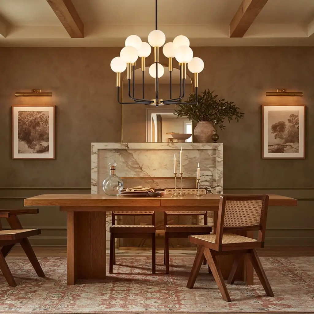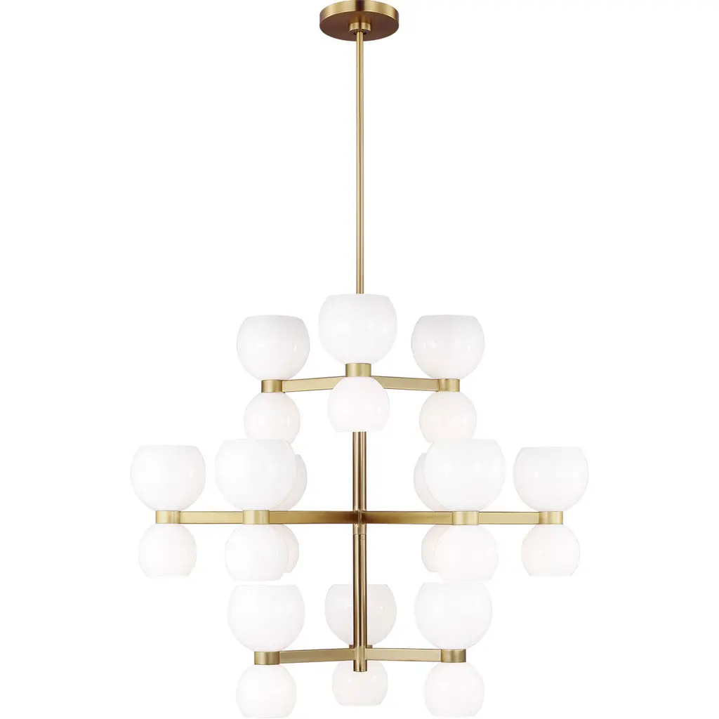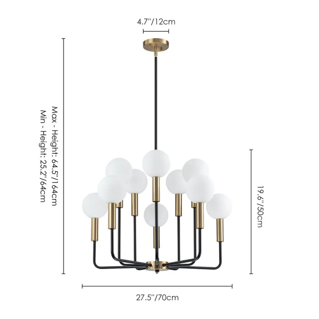 Elevate your space with this 10-light mid-century modern bubble chandelier. Staggered milky white glass globes create sculptural balance with frosted, opal tones that emit a warm, inviting glow. Measuring 27 inches wide, this statement piece blends vintage inspiration with modern elegance. Compatible with G9 bulbs (not included), the fixture is fully dimmable and comes with complete mounting hardware for easy installation. Perfect for dining rooms, living areas, or entryways.