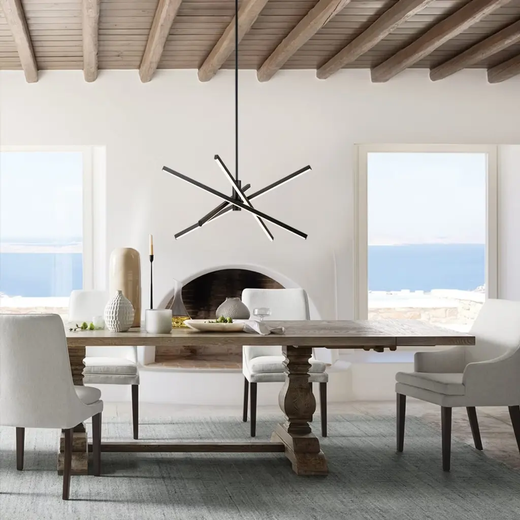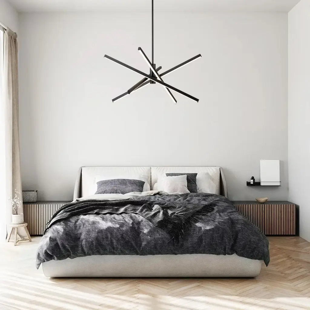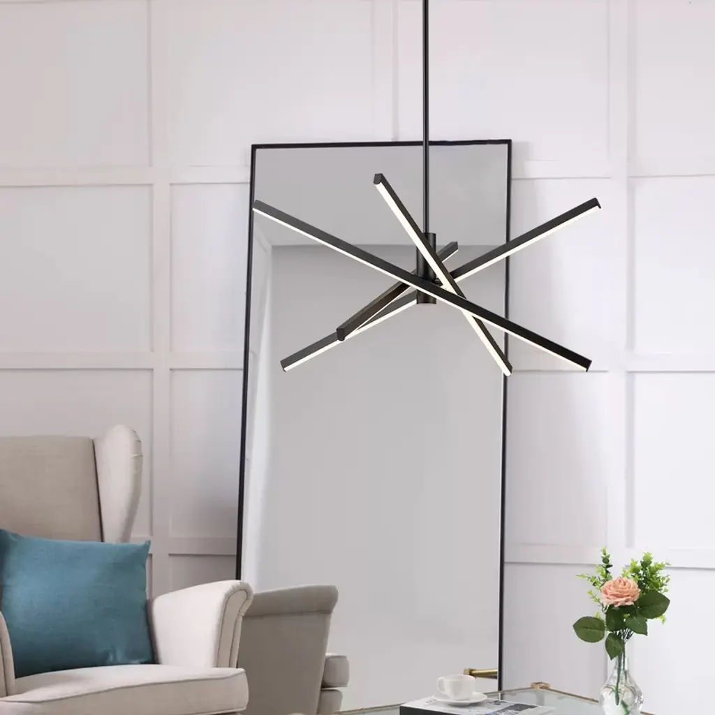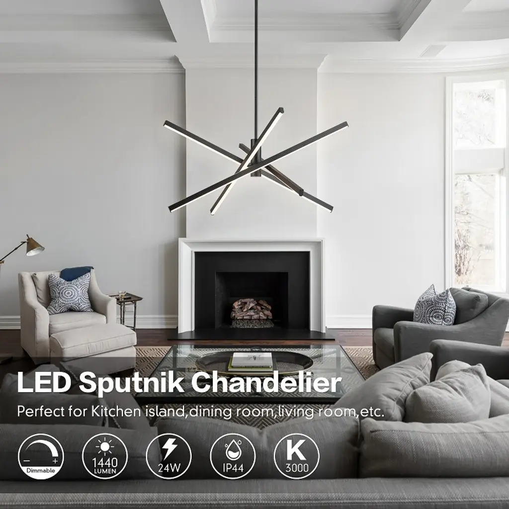 Enhance your space with contemporary charm using this 4-light modern linear sputnik dimmable integrated LED chandelier, blending traditional starburst personality with minimalist linear design above a dining table or entryway. Featuring a rotatable design, it allows you to adjust the tube directions to fit your space. Crafted from die-cast aluminum with energy-efficient 3000K LED lighting, this LED chandelier combines practicality with artistry. Available in black, silver chrome, and gold finishes, this geometric and eye-catching ceiling light elevates your home's style.