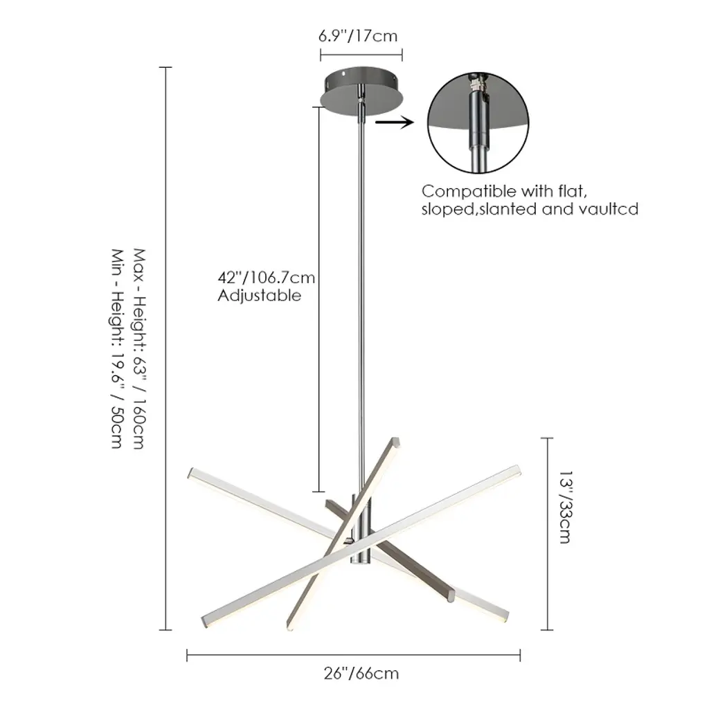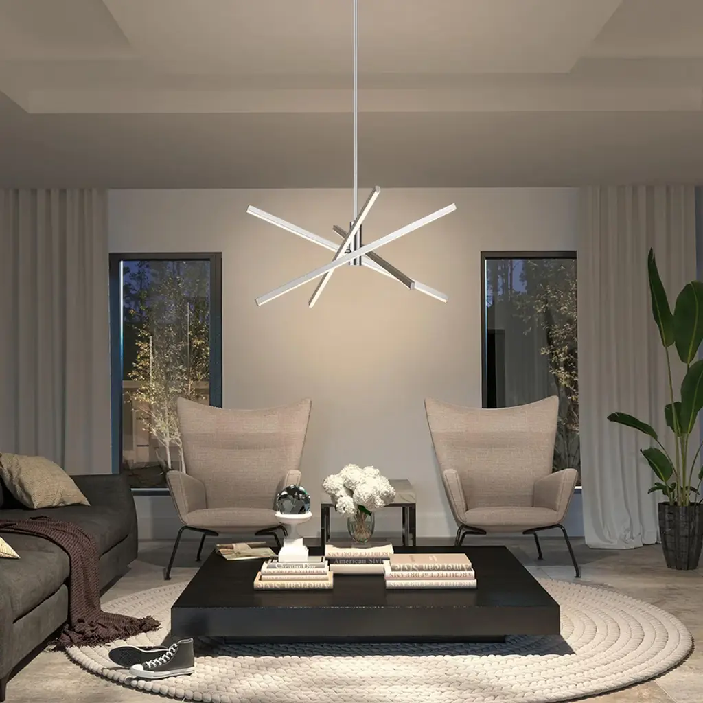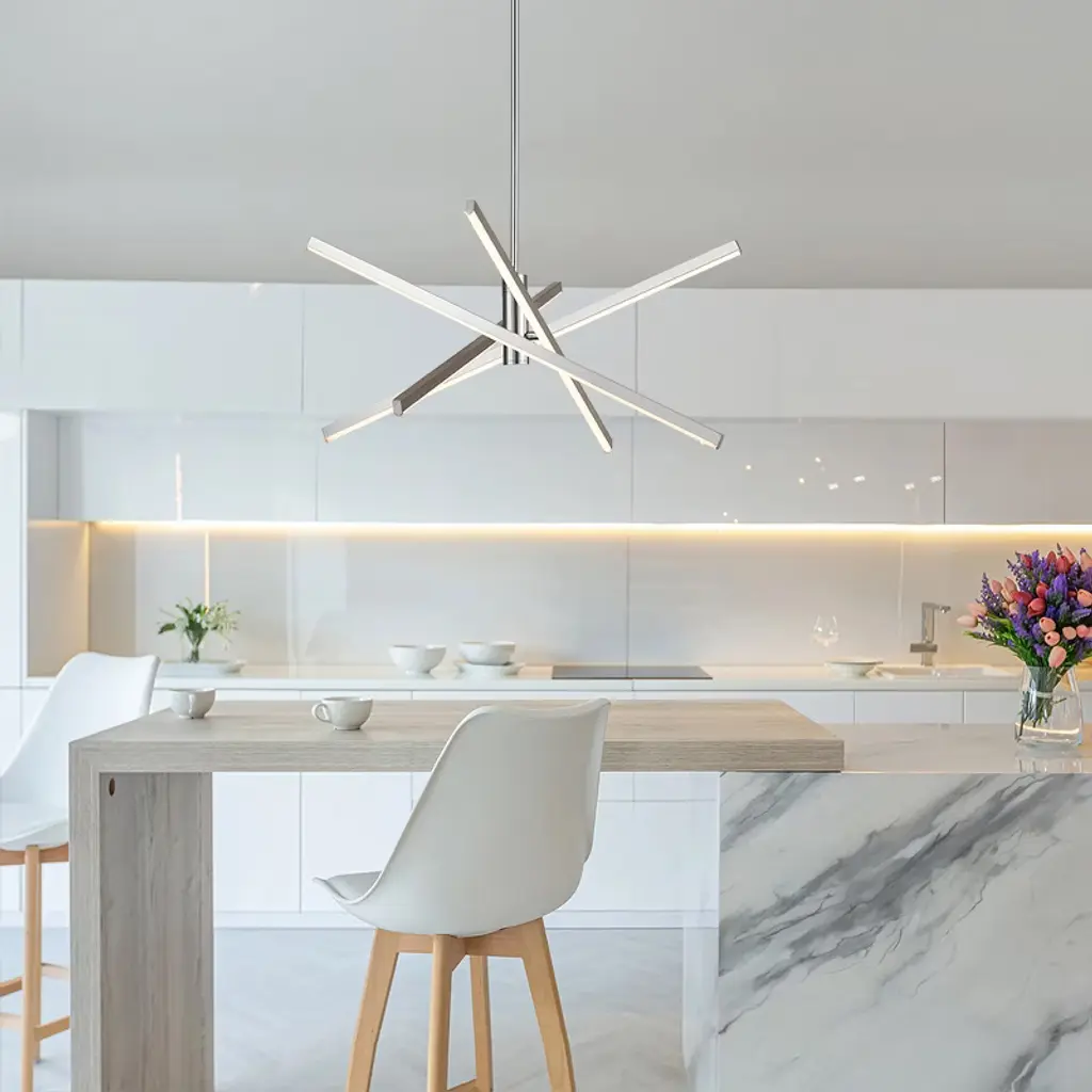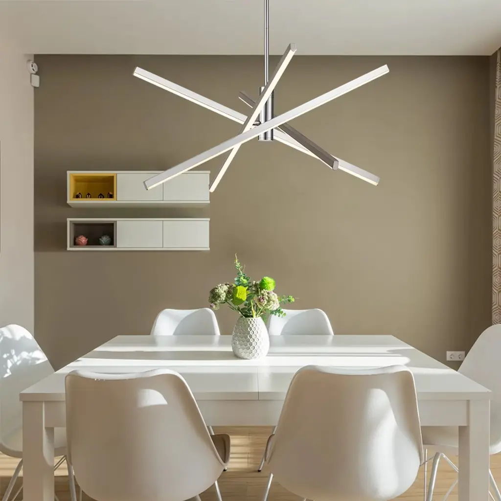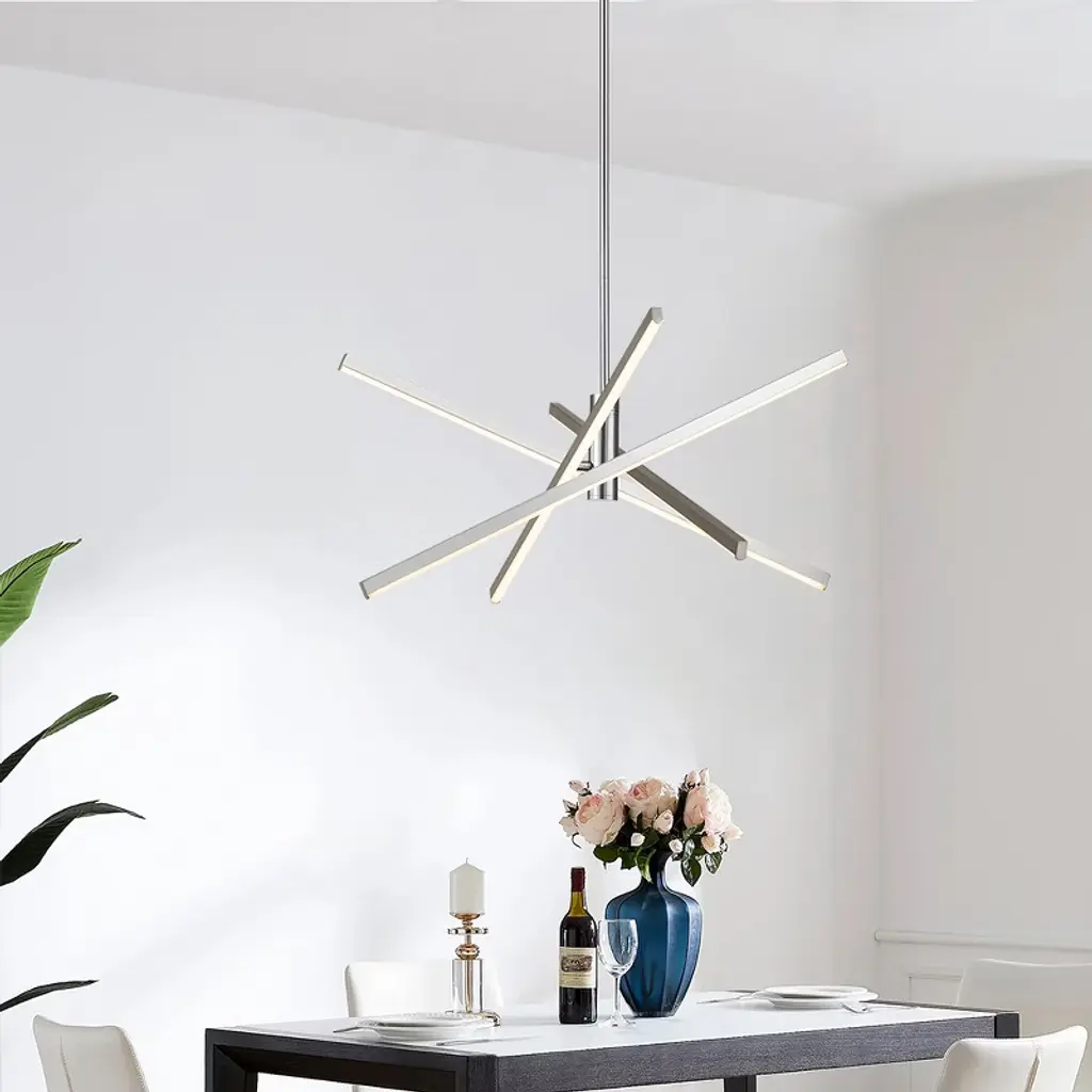 Enhance your space with contemporary charm using this 4-light modern linear sputnik dimmable integrated LED chandelier, blending traditional starburst personality with minimalist linear design above a dining table or entryway. Featuring a rotatable design, it allows you to adjust the tube directions to fit your space. Crafted from die-cast aluminum with energy-efficient 3000K LED lighting, this LED chandelier combines practicality with artistry. Available in black, silver chrome, and gold finishes, this geometric and eye-catching ceiling light elevates your home's style.
