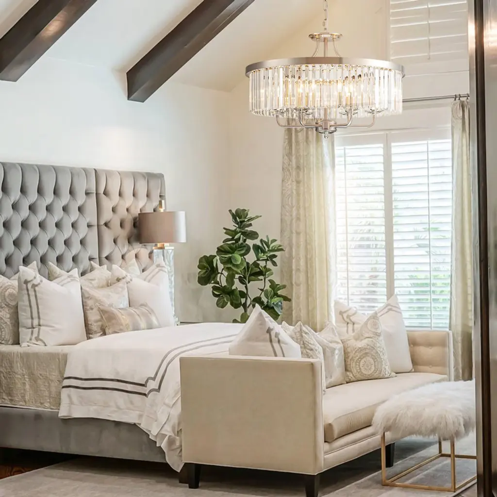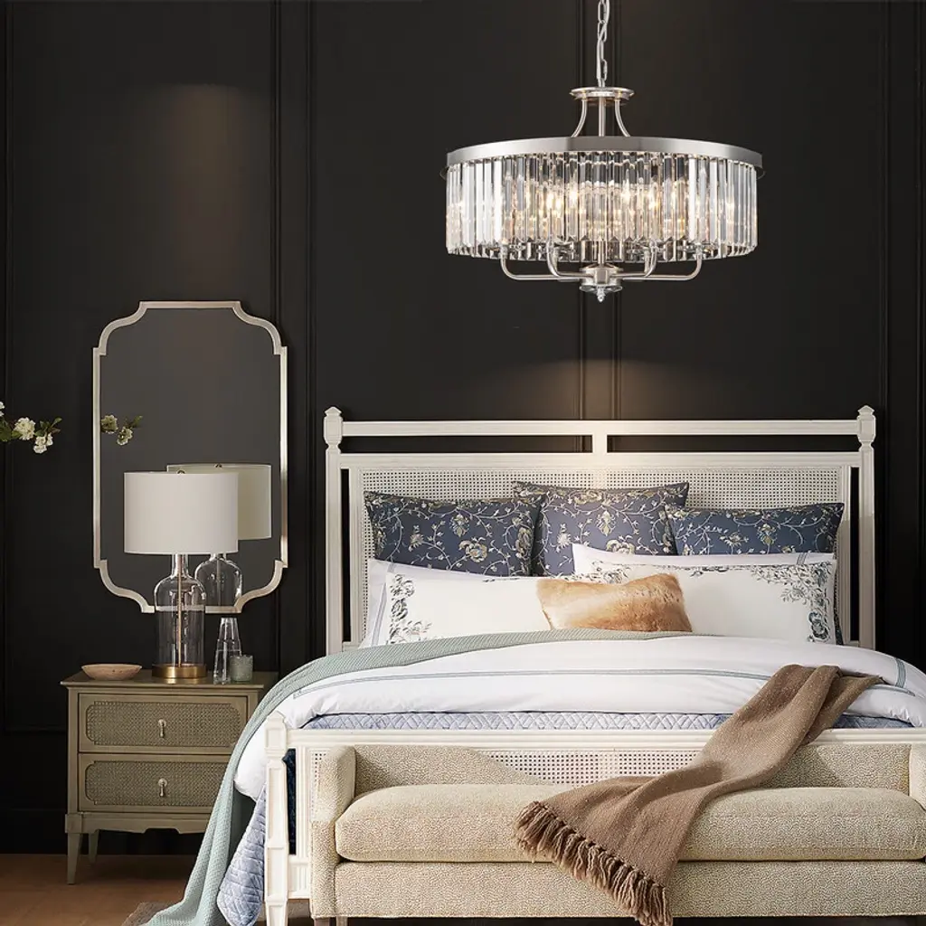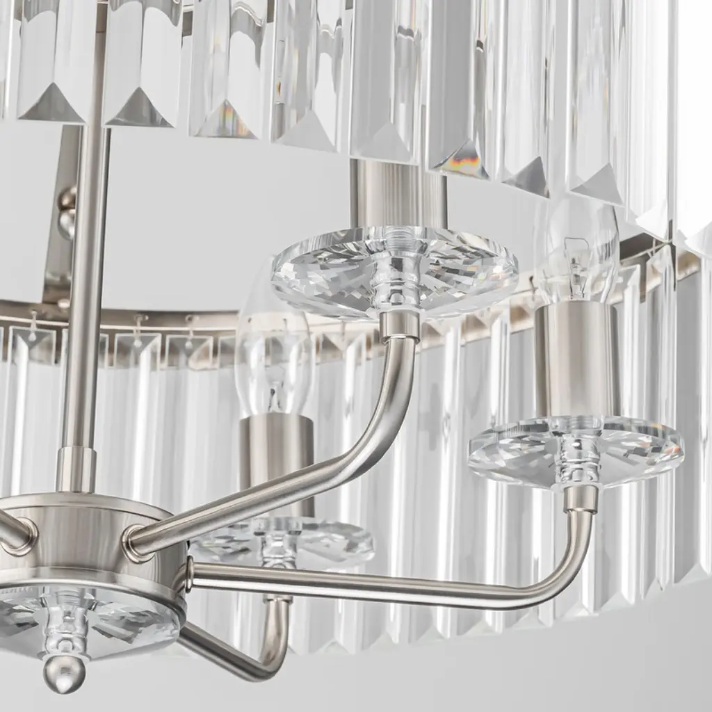 Illuminate your space with this 23" classic transitional chandelier featuring dazzling crystal prisms. Its multi-faceted crystals create sparkling rainbow refractions, casting vibrant light patterns on walls and ceilings. Perfect as a focal point, this dimmable fixture adds luxurious ambiance and dynamic lighting to any room. Easy to install and compatible with E12 bulbs up to 60W (bulbs not included), it enhances farmhouse and Mediterranean charm with eye-catching geometric artistry. Elevate your d¨¦cor with this stunning centerpiece that blends classic style and modern elegance effortlessly.