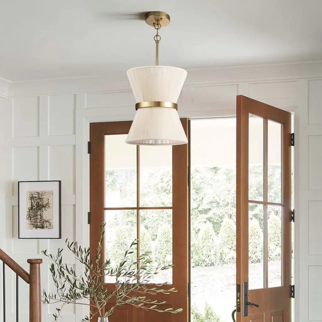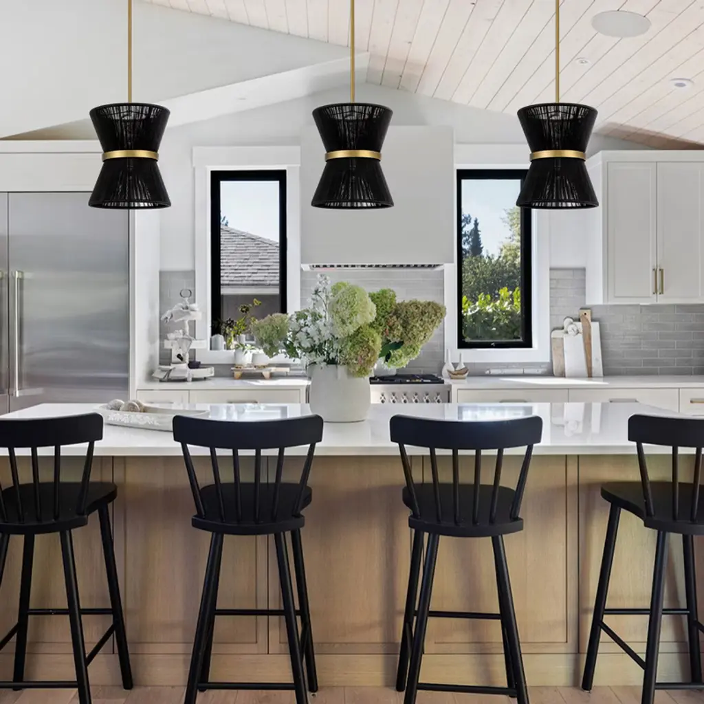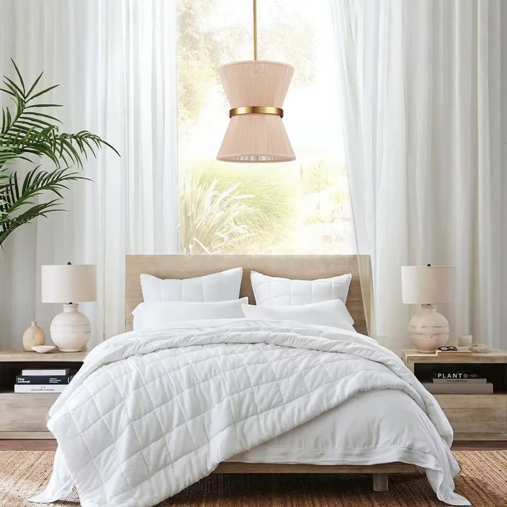Add texture and elegance to your space with this 2-light boho cone pendant, featuring a hand-wrapped tapered shade in bleached natural rope and paired with slightly aged antique brass. Designed for dry-rated areas and compatible with dimmers, this artisan-crafted fixture recommends the use of E26 bulbs (not included). Available in White and Black shade colors, this woven farmhouse pendant blends effortlessly into interiors where warmth and style are key.