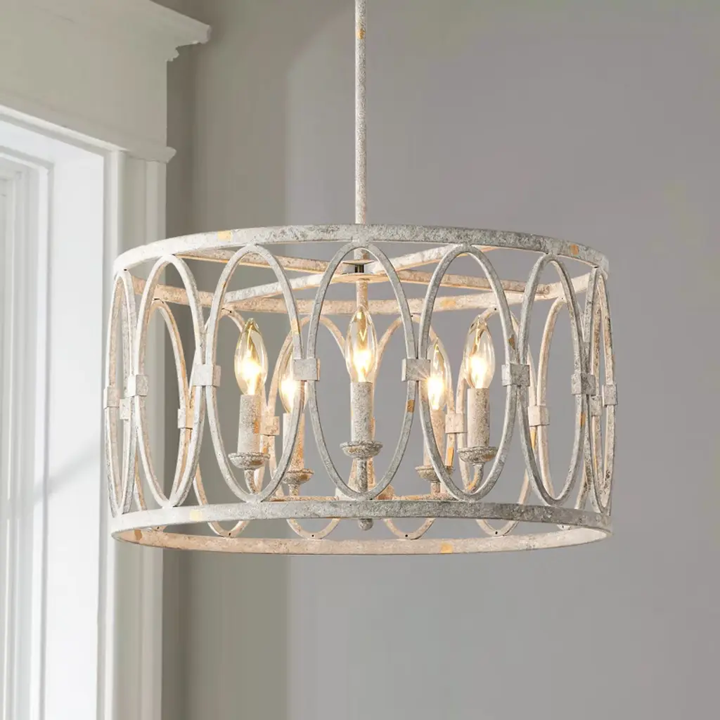 Rennnsan Xyluna 19" W 5 -Light Dimmable Rustic Drum Shaded Chandelier In Antique White