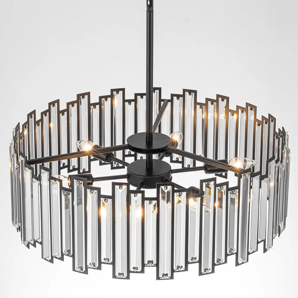Rennnsan Yvenlyn 23"w 6-light Drum Crystal Mid-century Modern Dimmable Chandelier In Black
