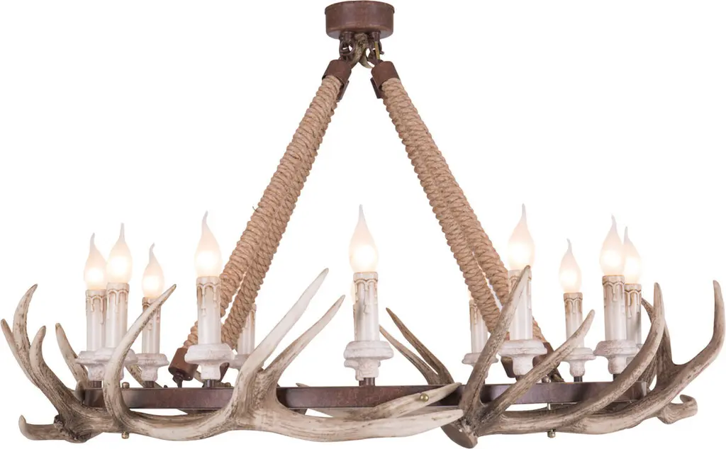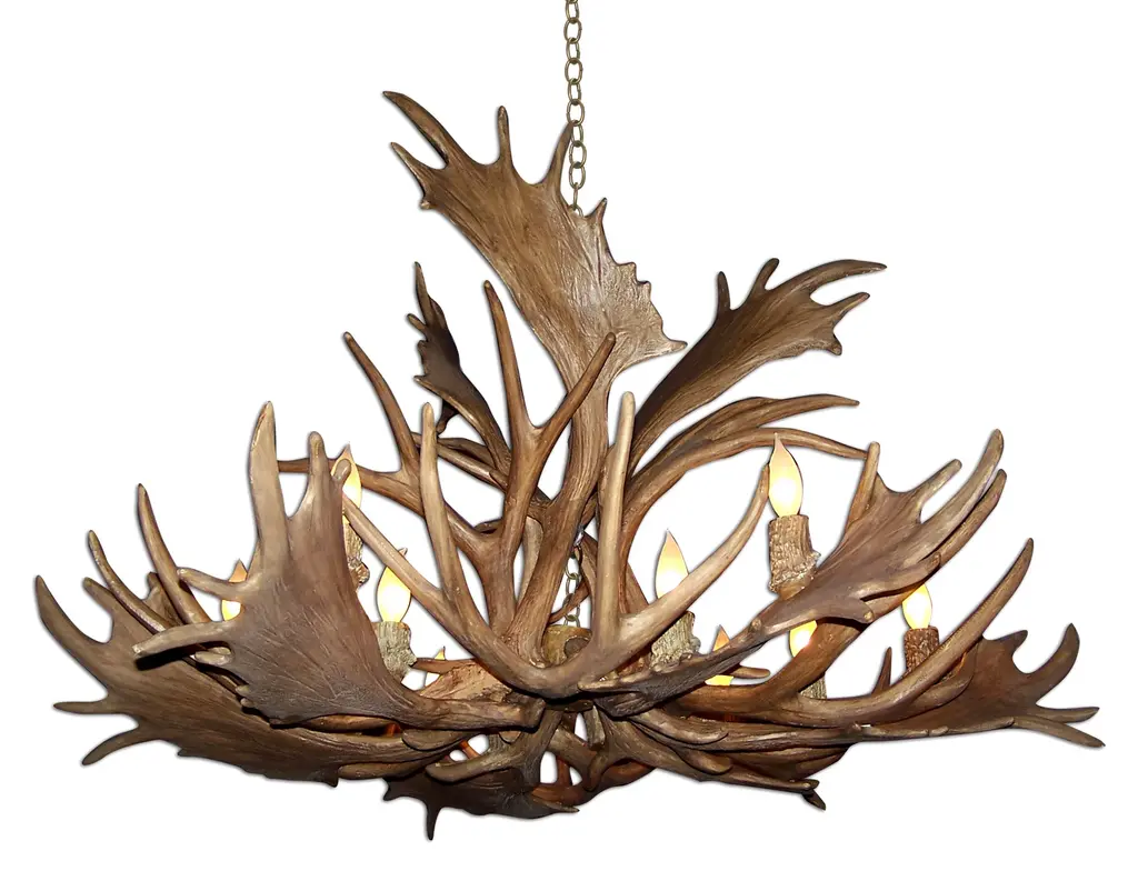 Reproduction Antler Fallow / Mule Deer Chandelier (50-52"D x 28-29"H) 12 light sockets, 6 feet of rustic bronze chain