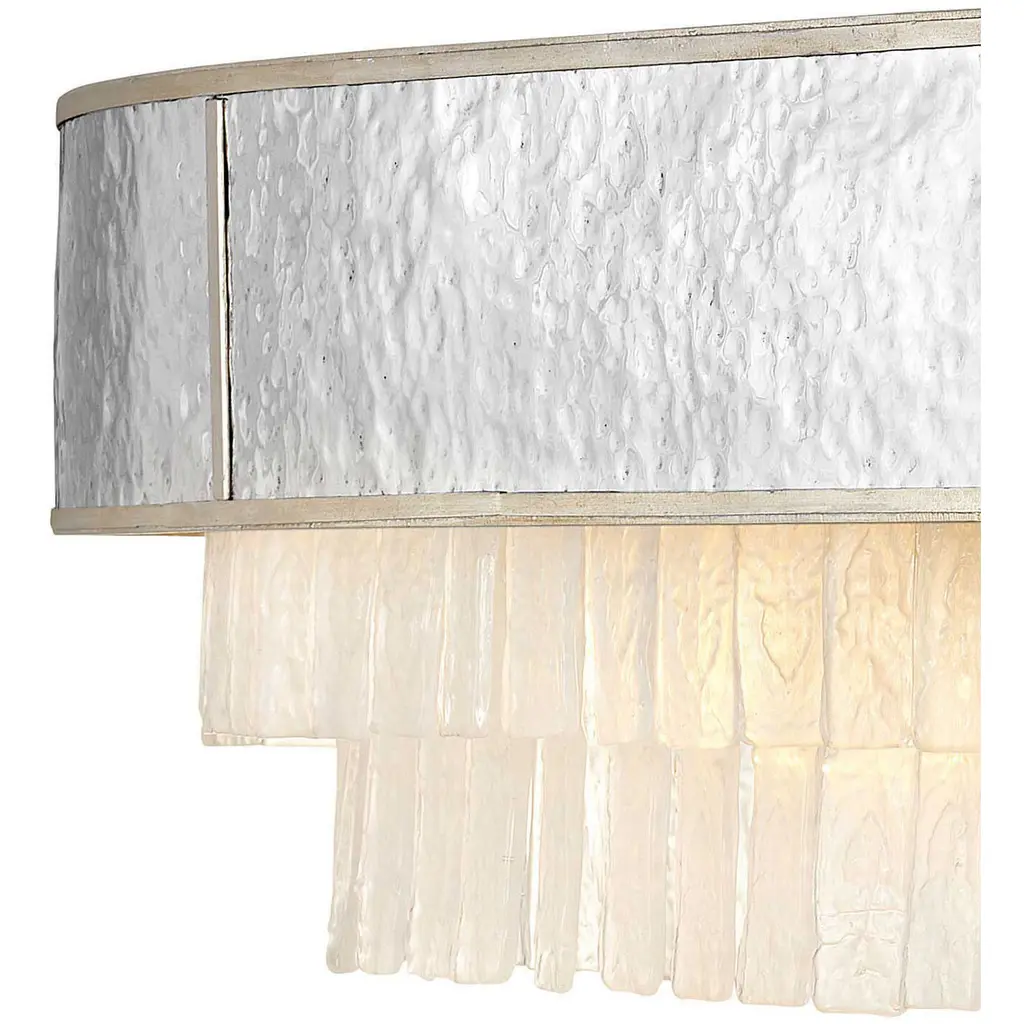 Reverie features a fanciful combination of finishes and shapes to create an opulent transitional silhouette. The robust, hammered stainless steel drum encompasses the textured crystal accents, which create a stunning profile from below. Metal binding adds an artisan touch that completes the look.
