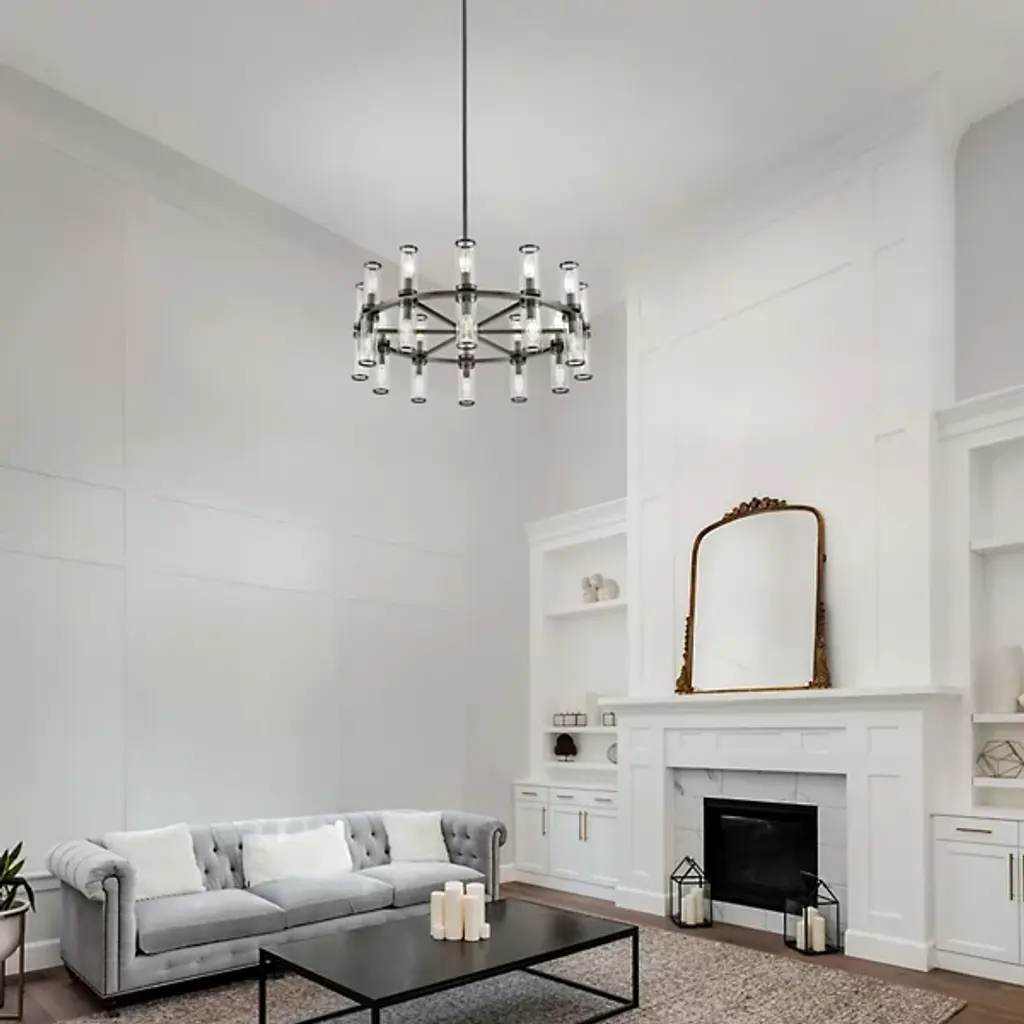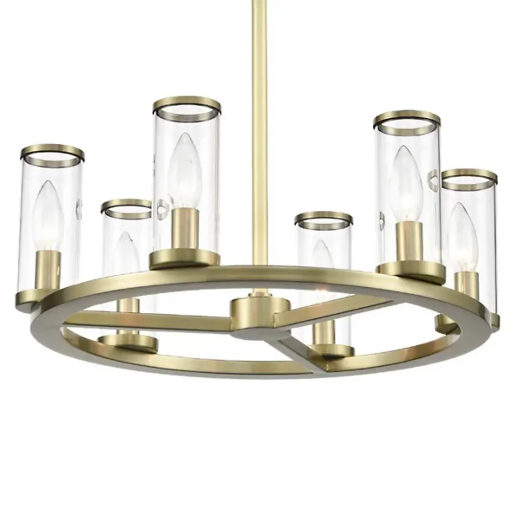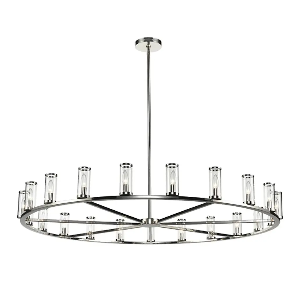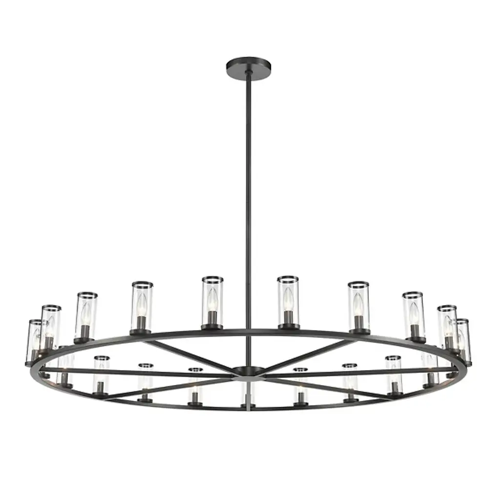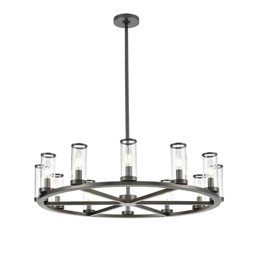 A luxurious centerpiece that the style of your ceiling setup will revolve around. The Revolve Chandelier by Alora Lighting merges the best of the old and the new into a fixture that’ll fill your space with elegance, luxury and tastefully old-fashioned aesthetics. A widespread Metal crafted ring-shaped frame holds up a series of candelabra bulbs, each encased within a cylindrical Glass shade. A wheel-spoke design in the center of the frame provides a nice visual accent, and the slim stem holds up the piece with considerable strength.