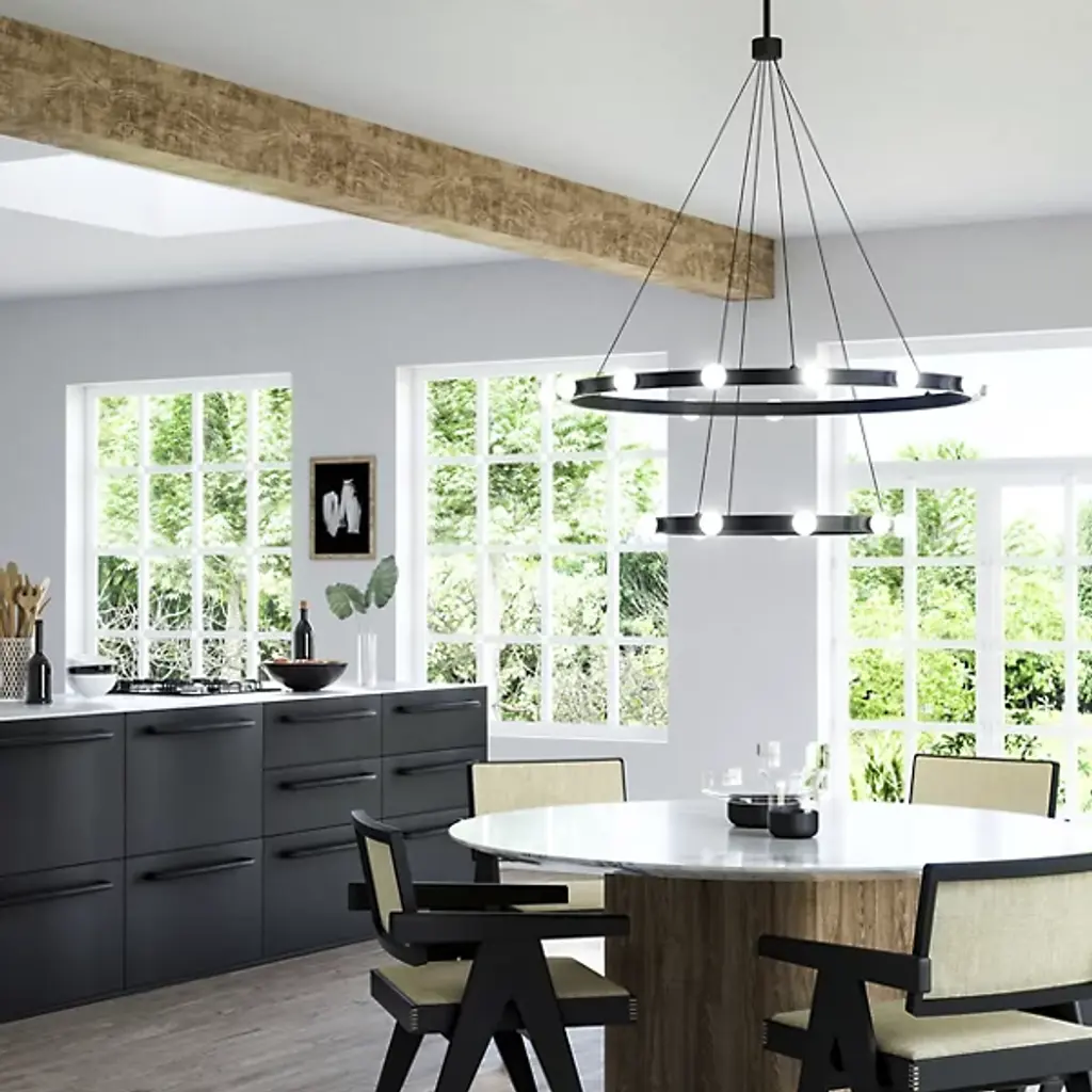Presented by Kuzco Lighting, the Rezz LED Chandelier is a charming reimagining of the old Hollywood style of luminaire we know and love. Glamorous opal glass diffusers dance around a modern, minimal frame to create a new look. This chandelier is clean and elegant. Its refined quality is great for a wide variety of design sensibilities.