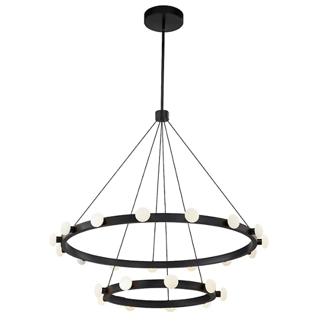Presented by Kuzco Lighting, the Rezz LED Chandelier is a charming reimagining of the old Hollywood style of luminaire we know and love. Glamorous opal glass diffusers dance around a modern, minimal frame to create a new look. This chandelier is clean and elegant. Its refined quality is great for a wide variety of design sensibilities.