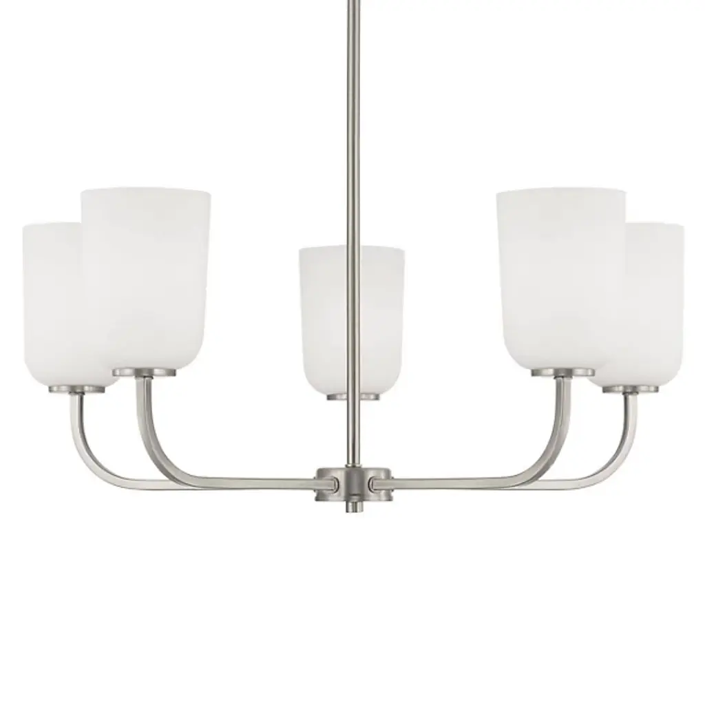 The Rhett Chandelier by Generation Lighting seamlessly integrates into modern and contemporary aesthetics with its clean-lined design and uncomplicated, rounded shape. Its minimalist silhouette guarantees versatility, ensuring it harmonizes effortlessly with any decor style, which makes it perfect for both modern and contemporary settings. This chandelier's adaptability allows it to blend seamlessly into diverse interior designs, providing a timeless and refined elegance that elevates the ambiance of any room.