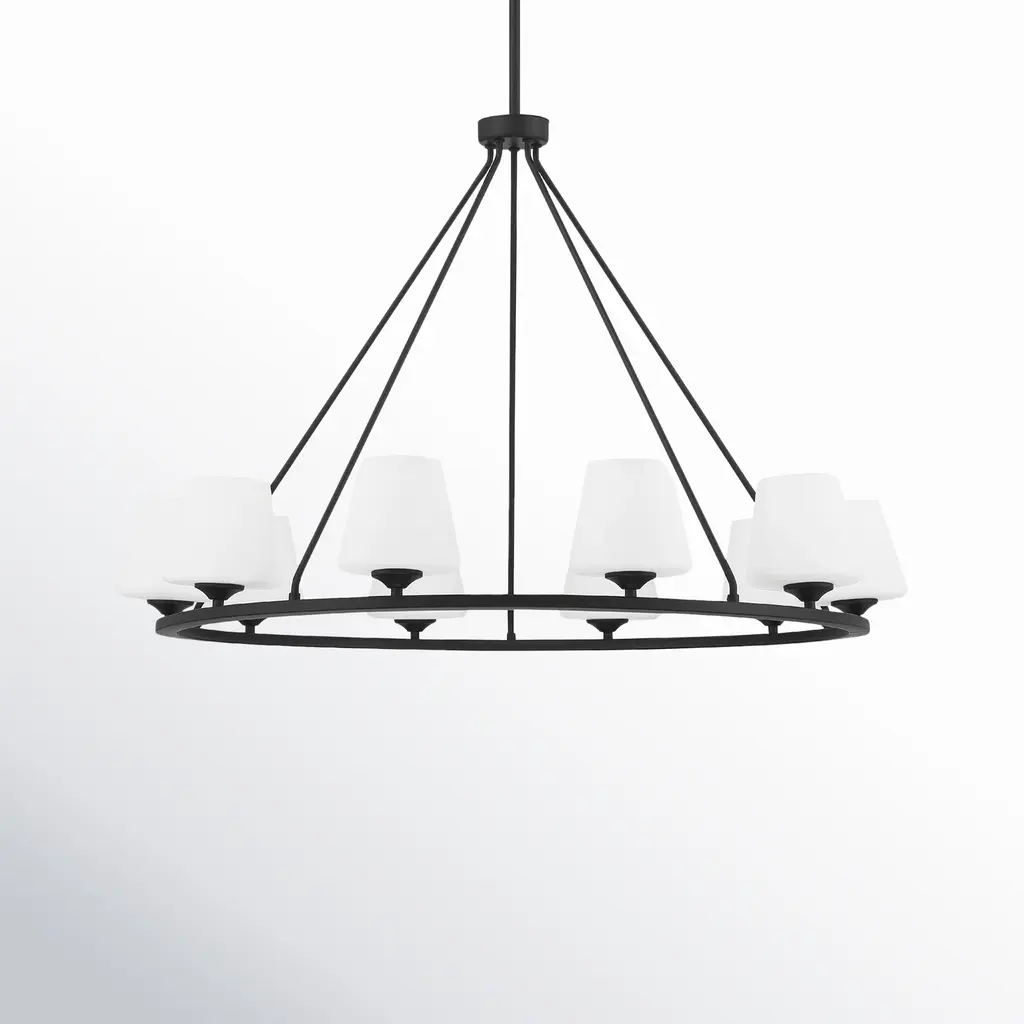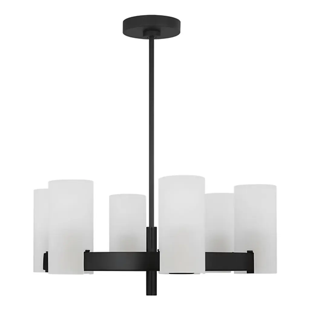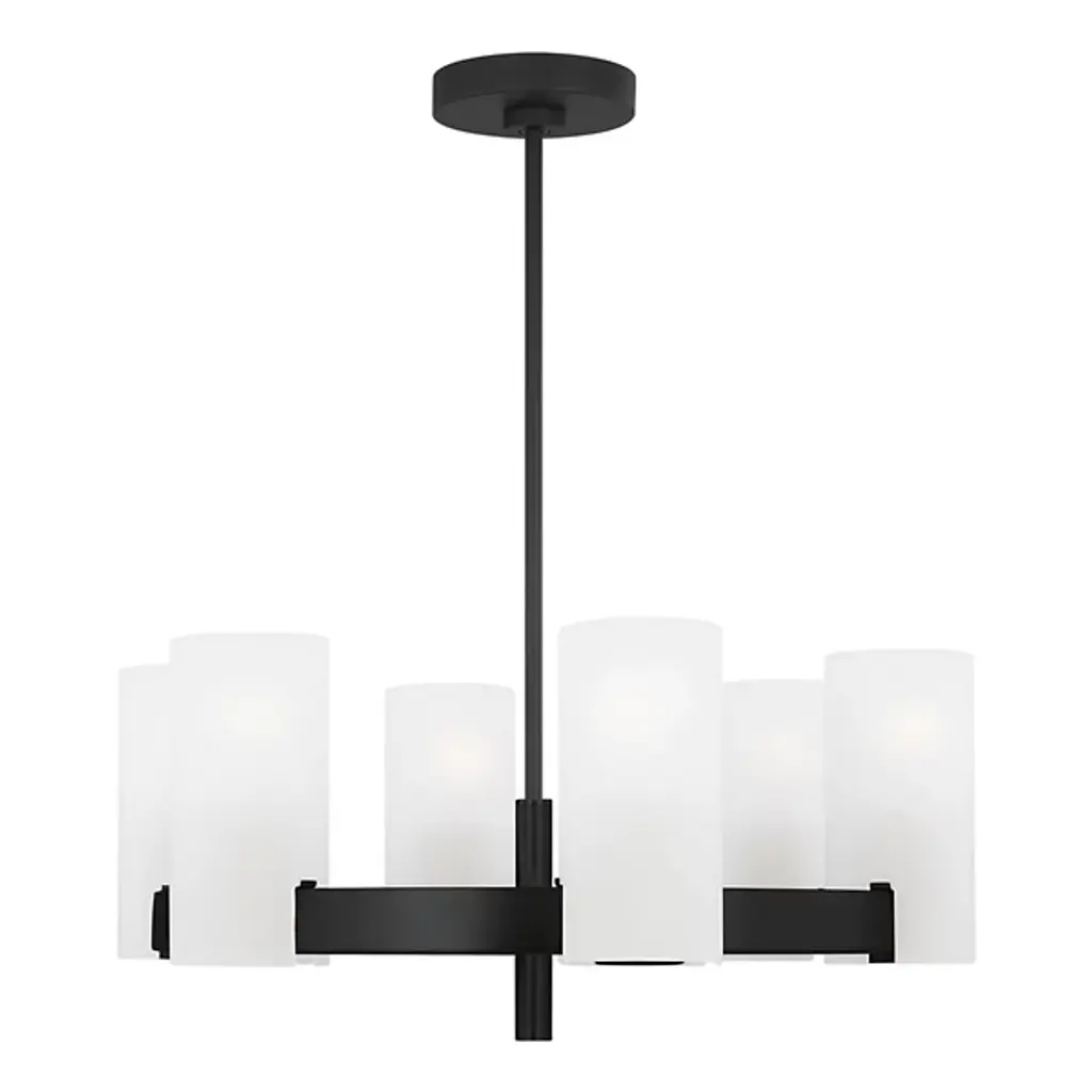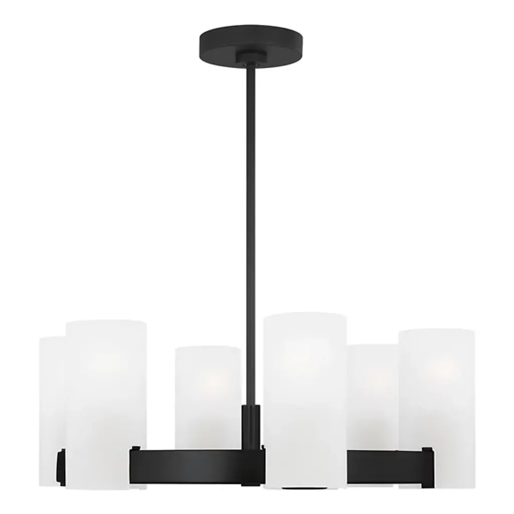 The Rhode Chandelier from Visual Comfort Studio is an exquisite lighting solution designed by Drew & Jonathan Scott. This chandelier is composed of sturdy steel complemented by gorgeous etched glass shades. These shades are illuminated with an LED glow that brings brilliance to your dining areas, living rooms, and more. Its simple shapes give your home décor a clean and streamlined presentation. Rhode is secured overhead by a ceiling canopy.