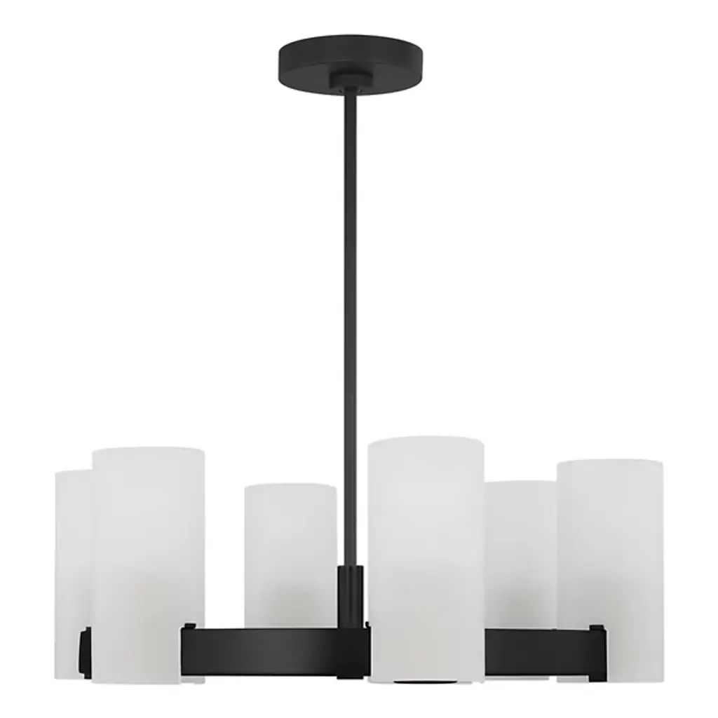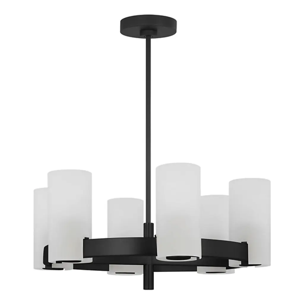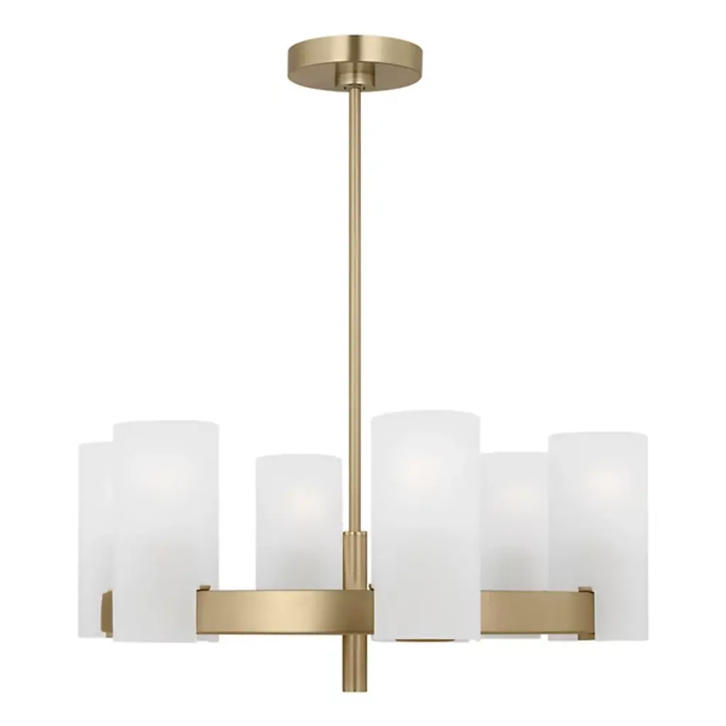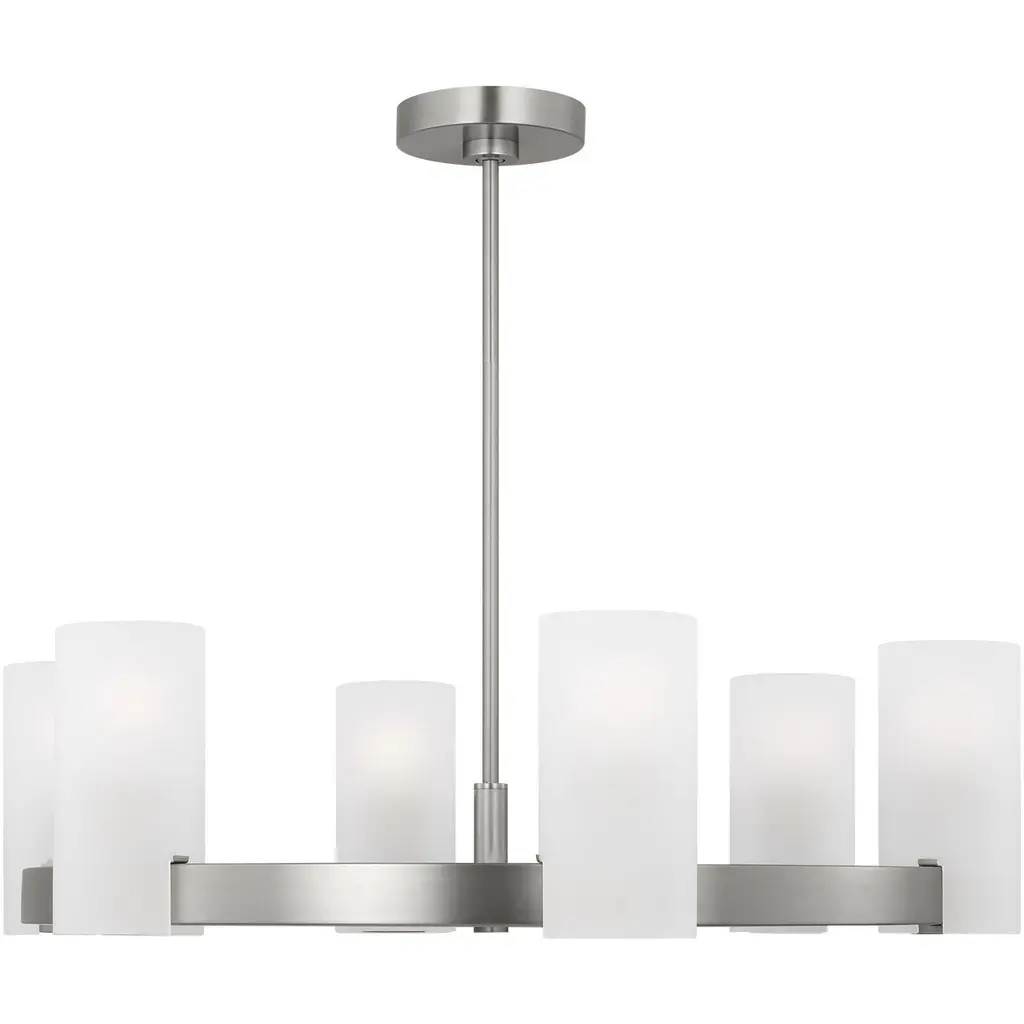 The Rhode Chandelier from Visual Comfort Studio is an exquisite lighting solution designed by Drew & Jonathan Scott. This chandelier is composed of sturdy steel complemented by gorgeous etched glass shades. These shades are illuminated with an LED glow that brings brilliance to your dining areas, living rooms, and more. Its simple shapes give your home décor a clean and streamlined presentation. Rhode is secured overhead by a ceiling canopy.