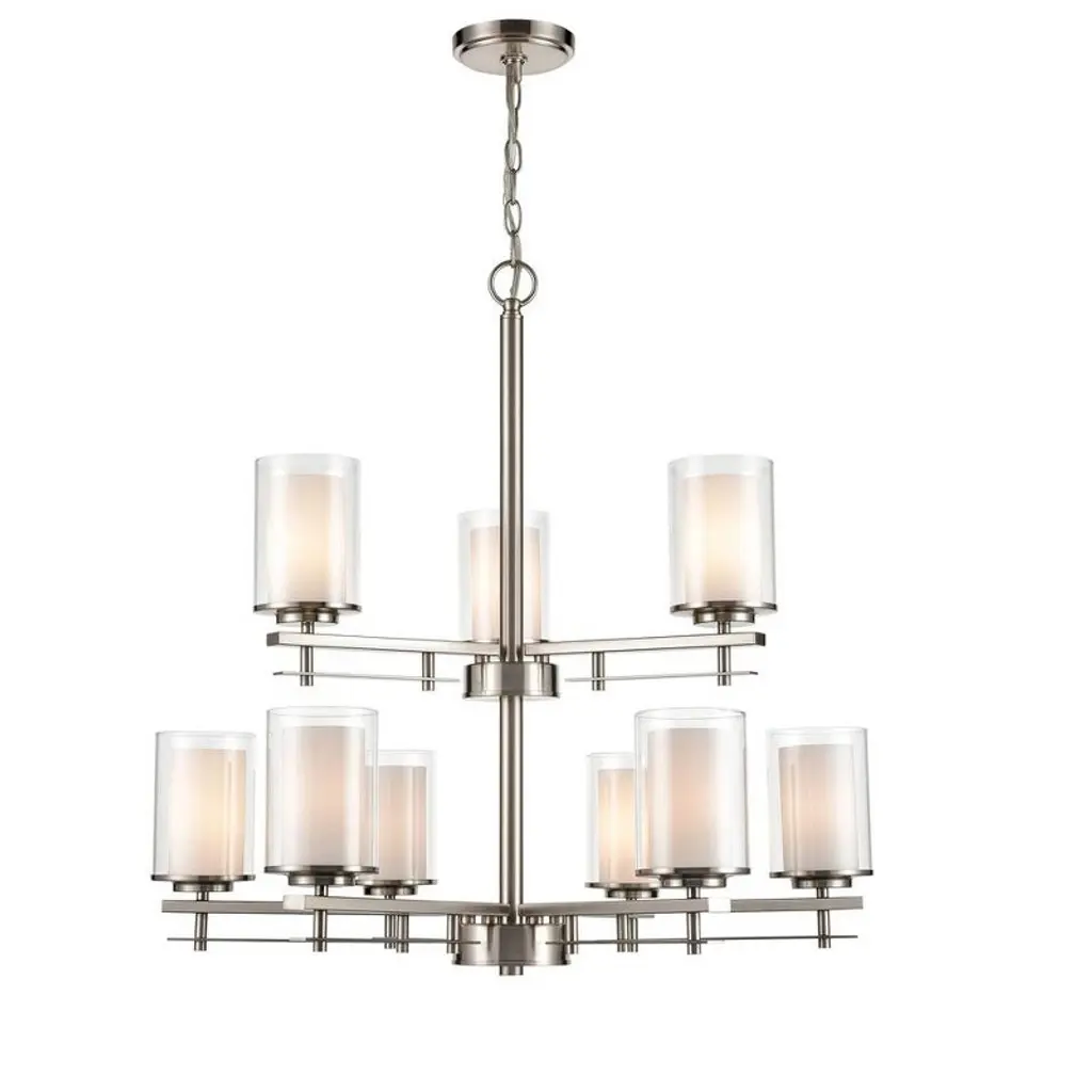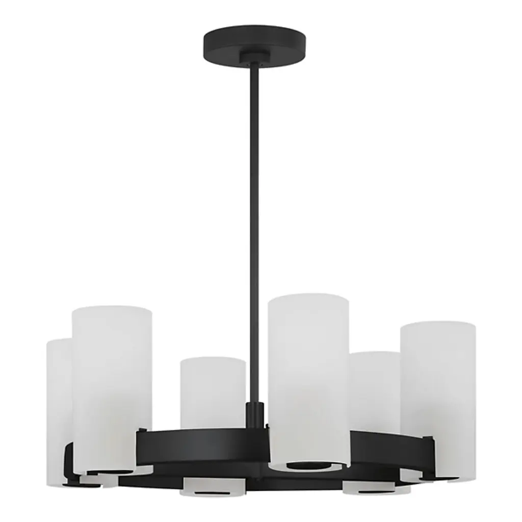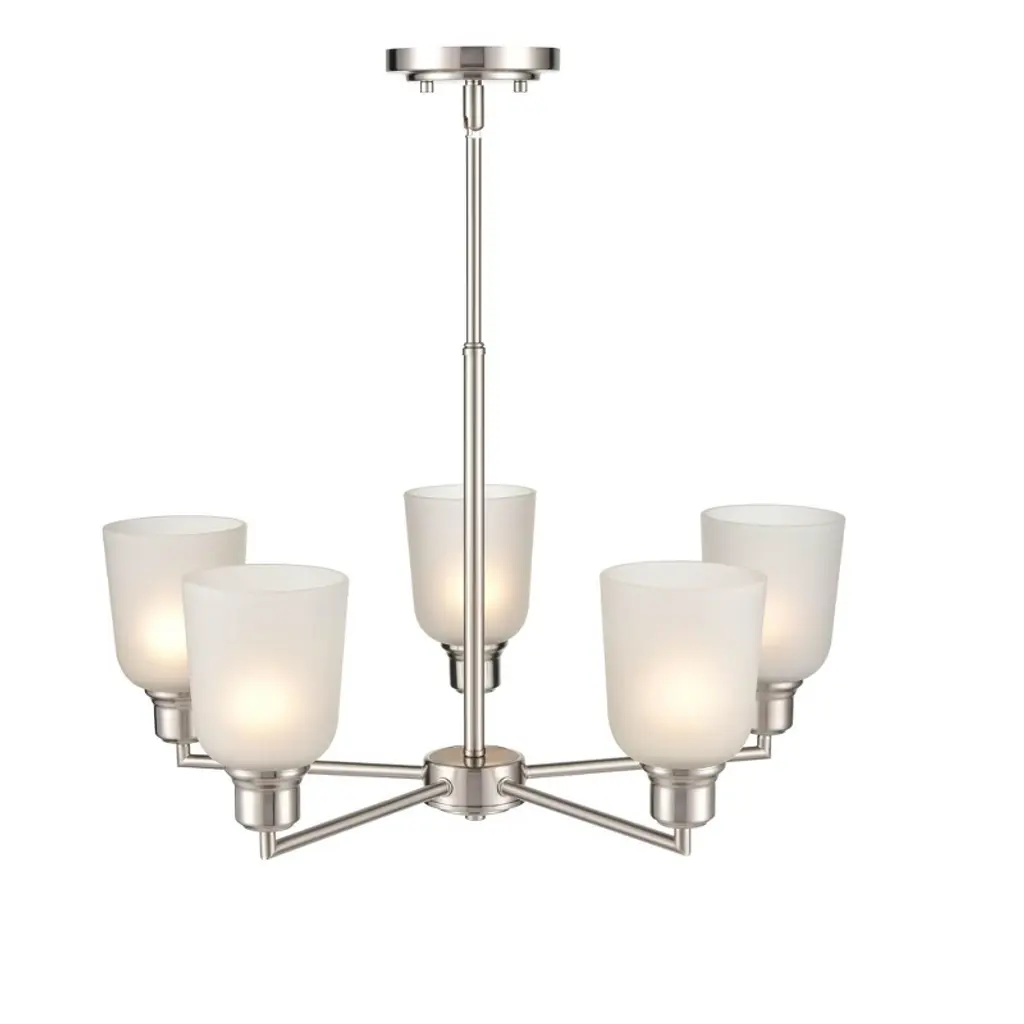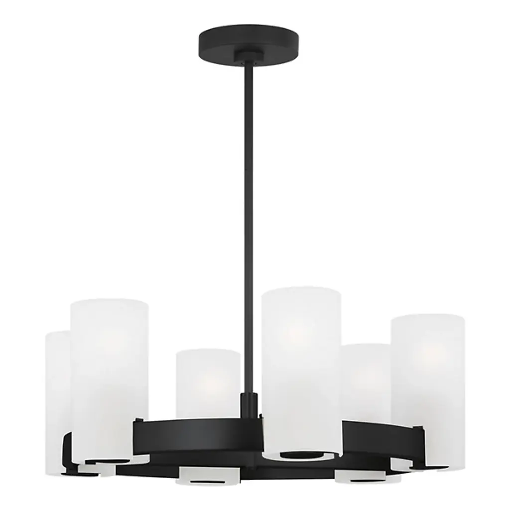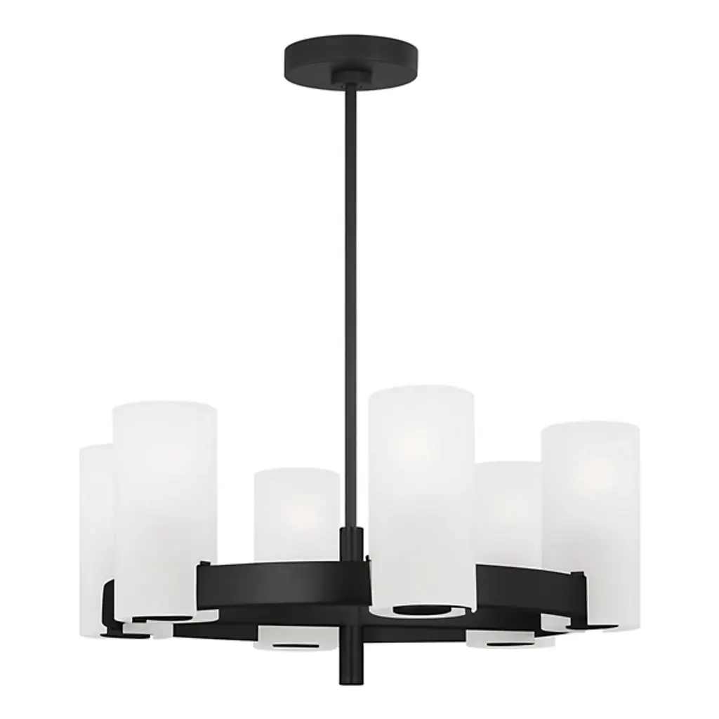 The Rhode Chandelier from Visual Comfort Studio is an exquisite lighting solution designed by Drew & Jonathan Scott. This chandelier is composed of sturdy steel complemented by gorgeous etched glass shades. These shades are illuminated with an LED glow that brings brilliance to your dining areas, living rooms, and more. Its simple shapes give your home décor a clean and streamlined presentation. Rhode is secured overhead by a ceiling canopy.