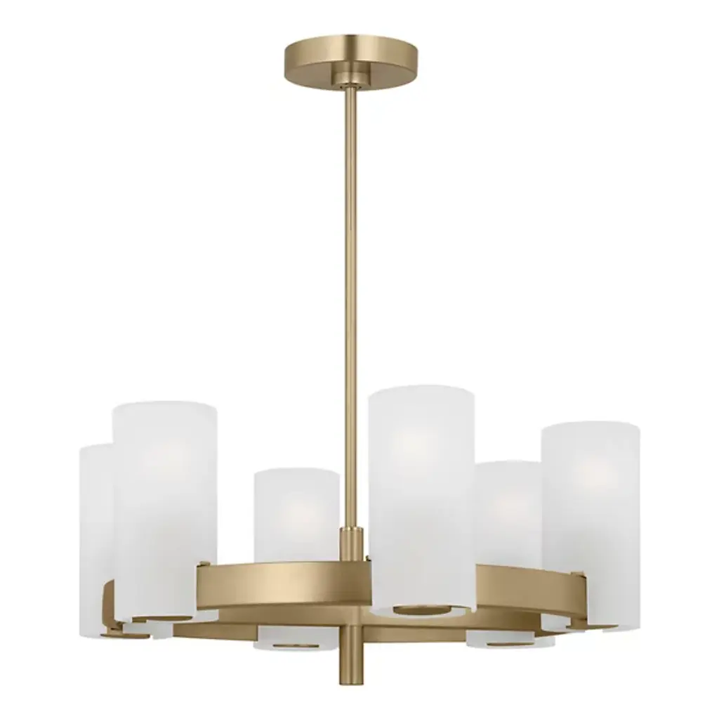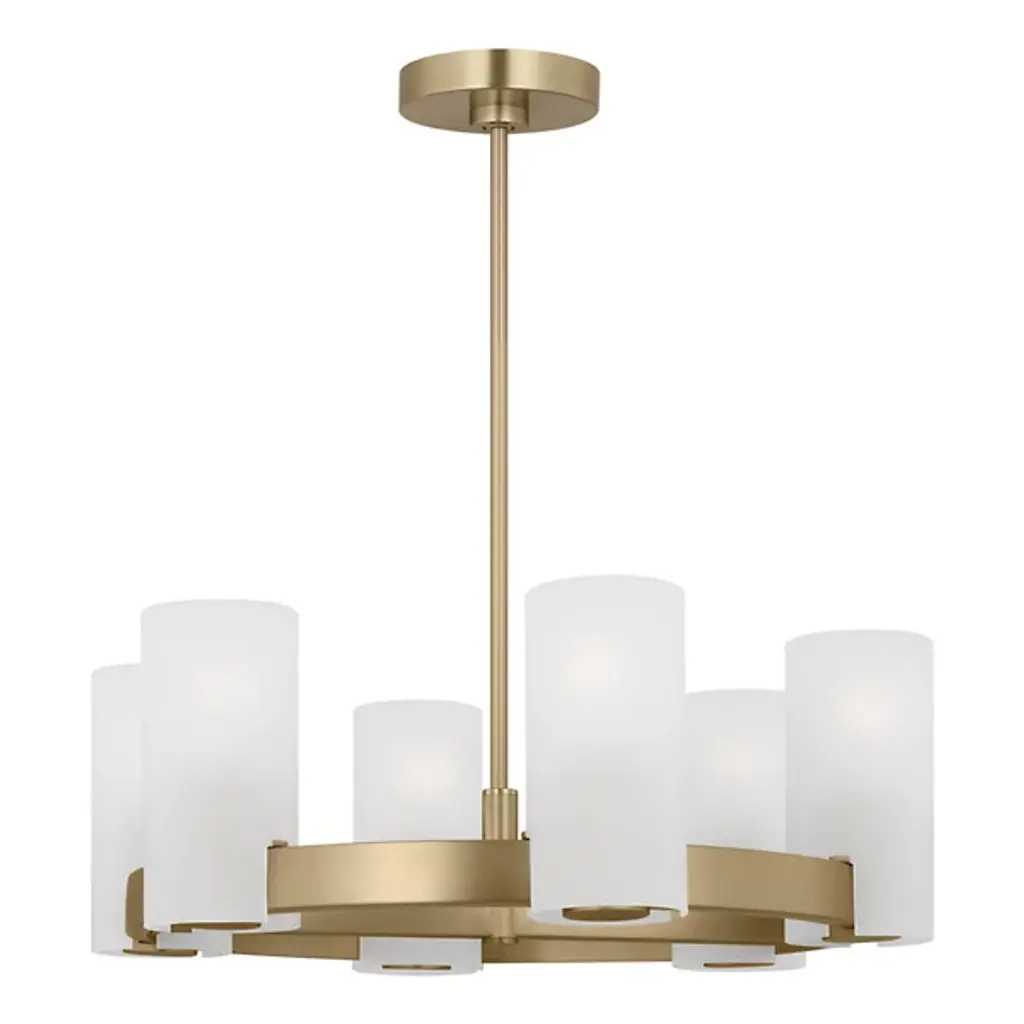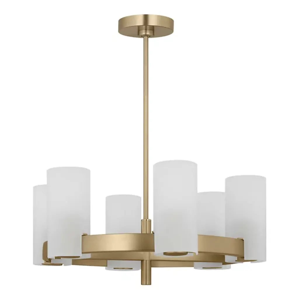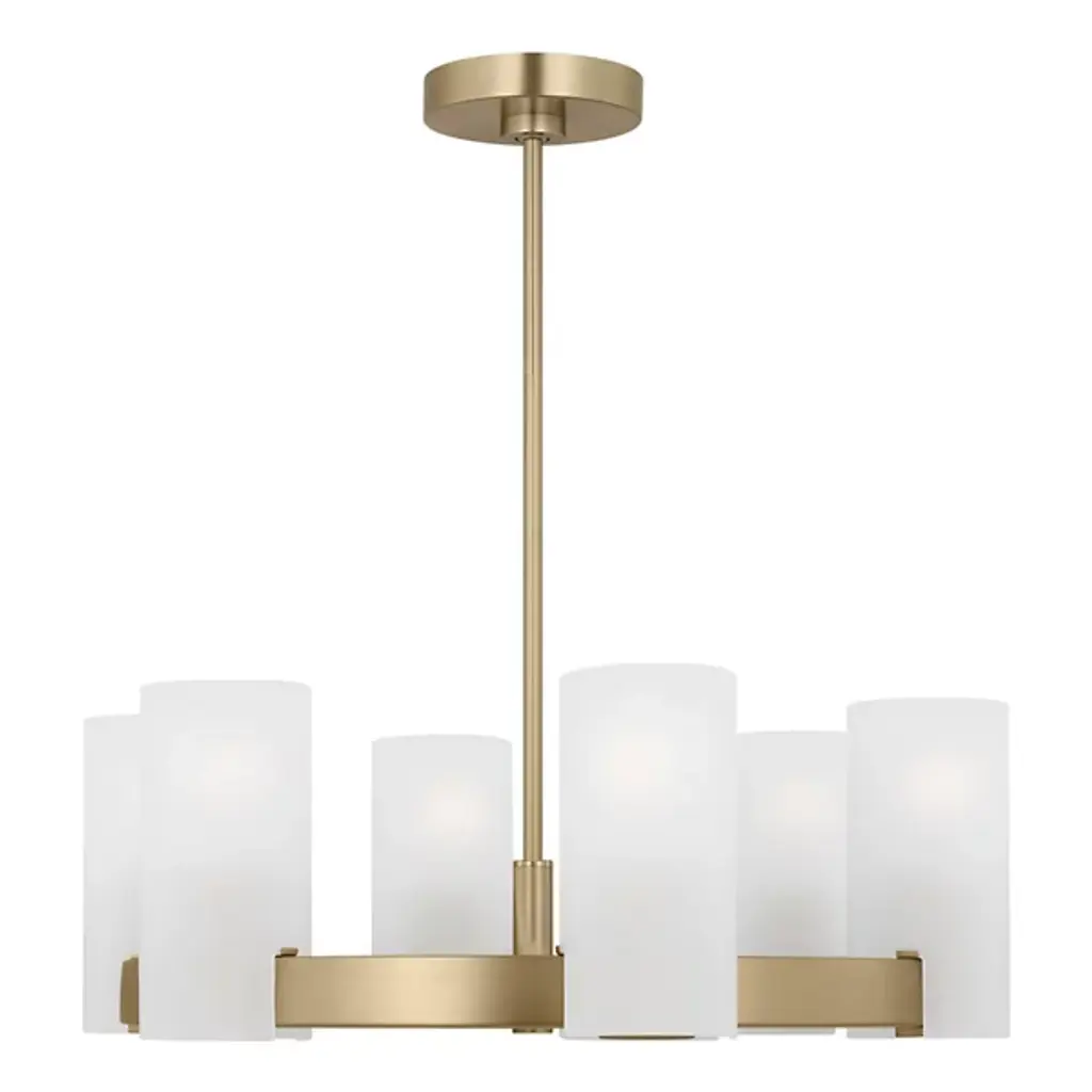 The Rhode Chandelier from Visual Comfort Studio is an exquisite lighting solution designed by Drew & Jonathan Scott. This chandelier is composed of sturdy steel complemented by gorgeous etched glass shades. These shades are illuminated with an LED glow that brings brilliance to your dining areas, living rooms, and more. Its simple shapes give your home décor a clean and streamlined presentation. Rhode is secured overhead by a ceiling canopy.