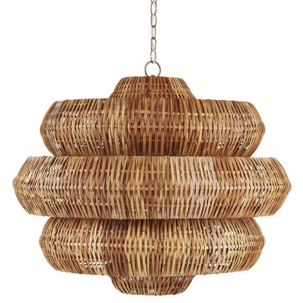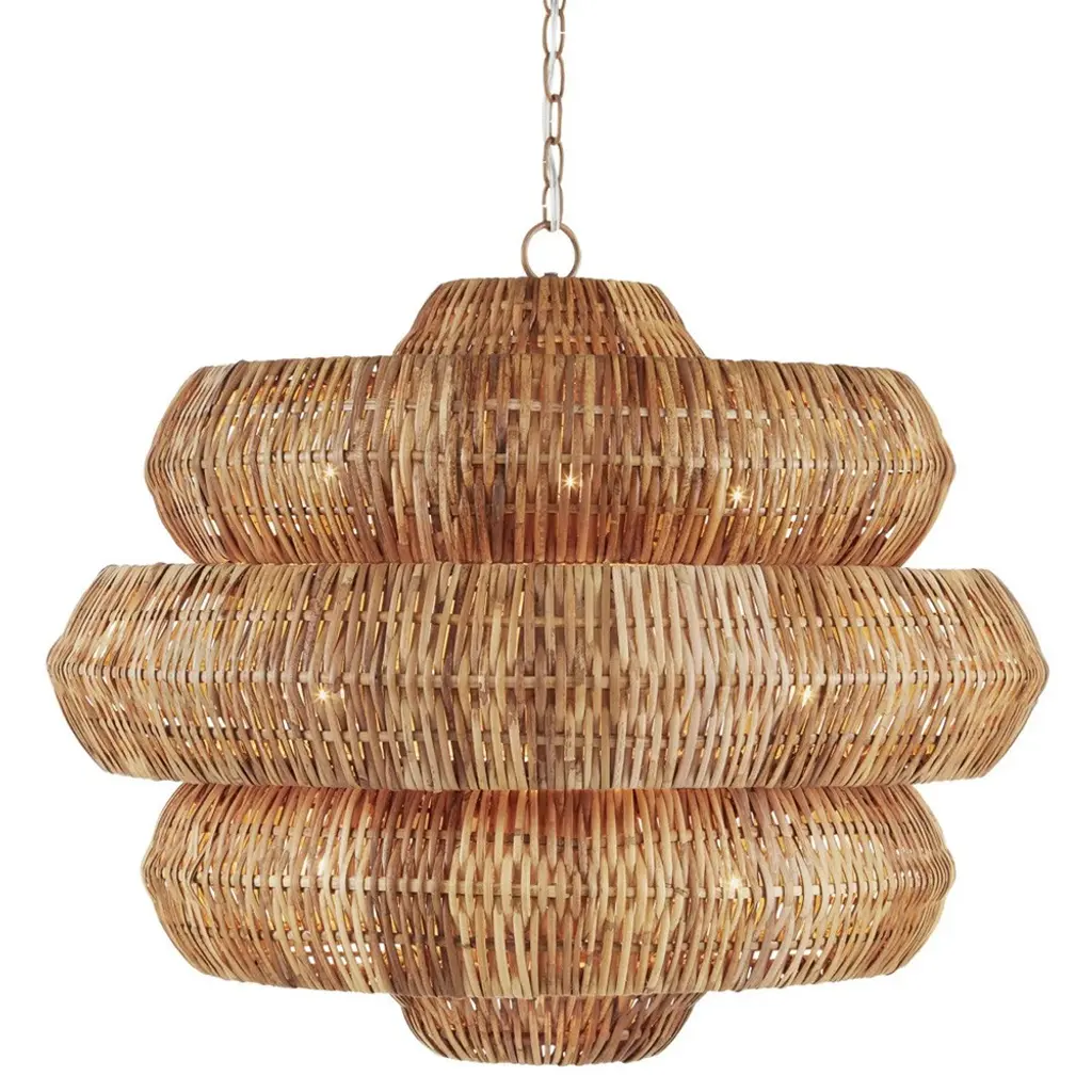 Rica Coastal Beach Brown Rattan 3 Tier Chandelier - Medium