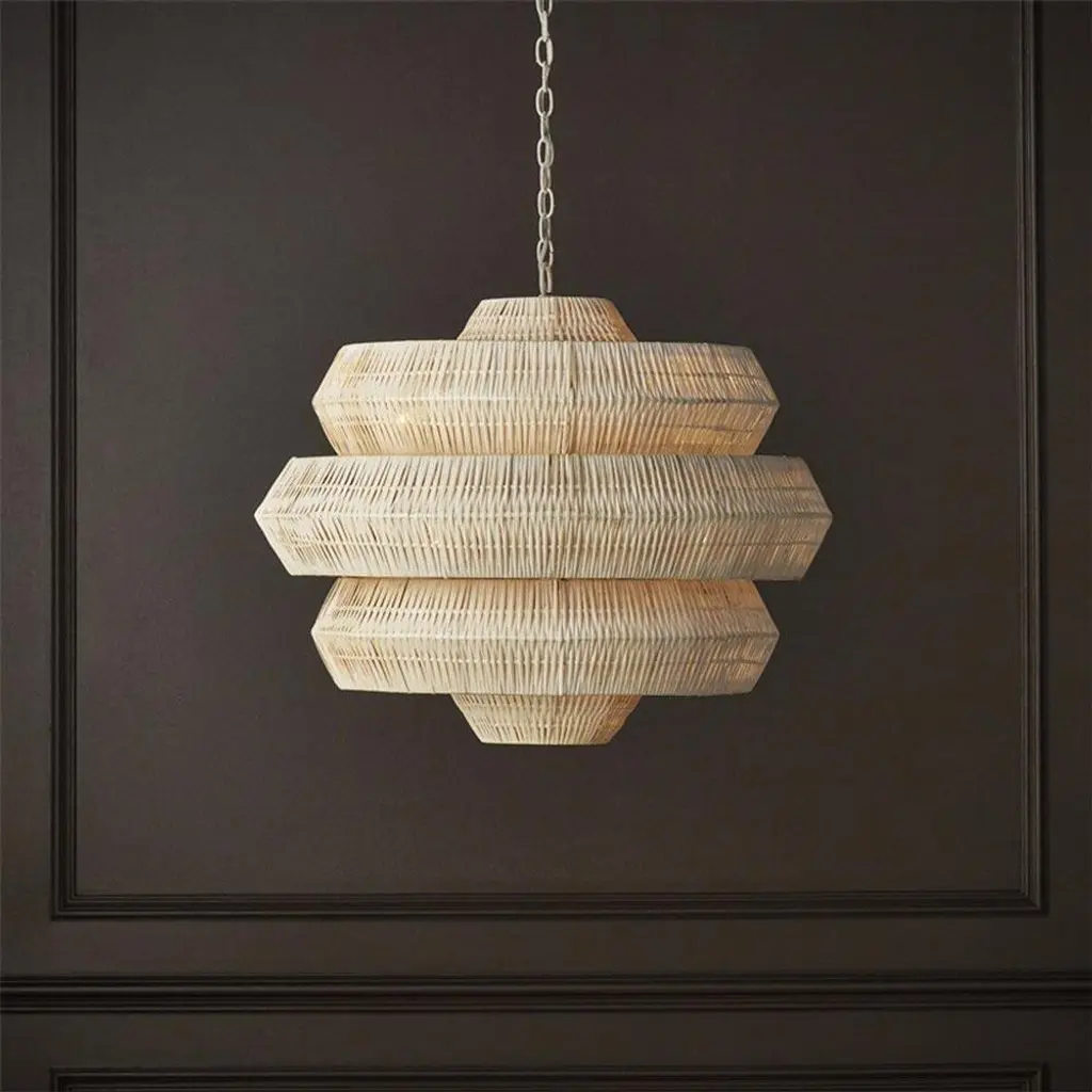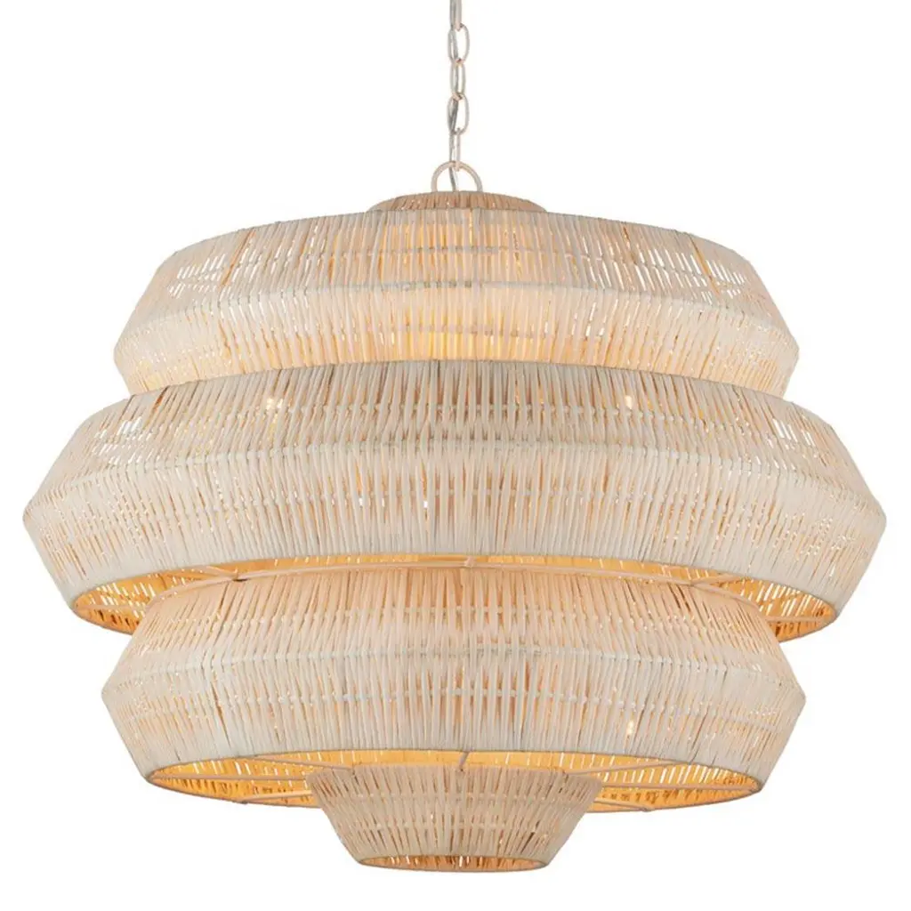 Rica Coastal Beach White Rattan 3 Tier Chandelier - Medium