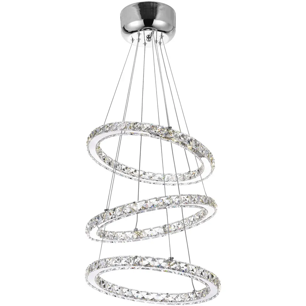 Brighten your space with the Ring 24 inch Double Halo LED Chandelier. Featuring two crystal-bordered halos suspended at an elegant angled design, this energy-efficient fixture delivers stunning illumination and a modern glam look. Perfect for adding a touch of sparkle and sophistication to any room.
