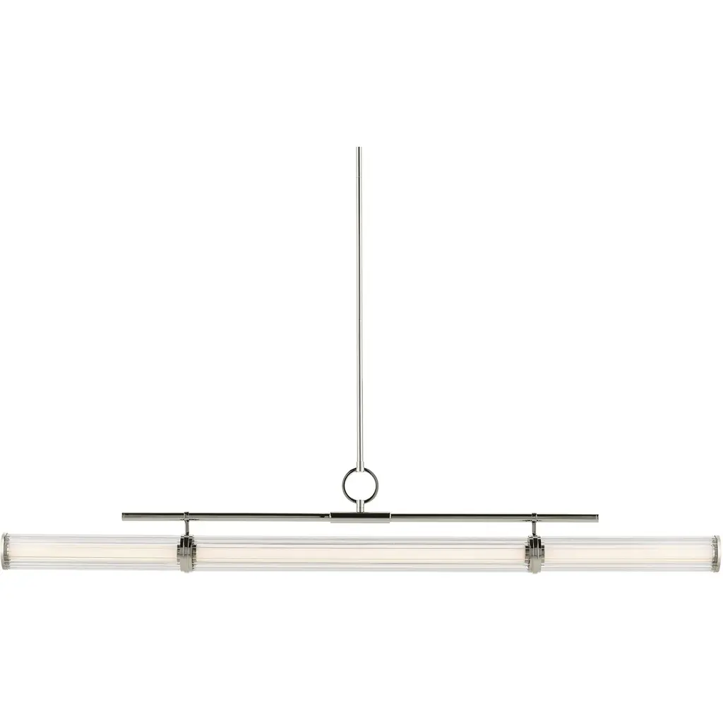 The Riven linear chandelier strikes the perfect balance between simplicity and sophistication. Inspired by a vintage map bag, it looks like it could be strapped to the back of an old-world explorer. Clear fluted glass surrounds a white acrylic interior, softening the integrated LED light source. This energy-efficient light is as versatile as it is refined.