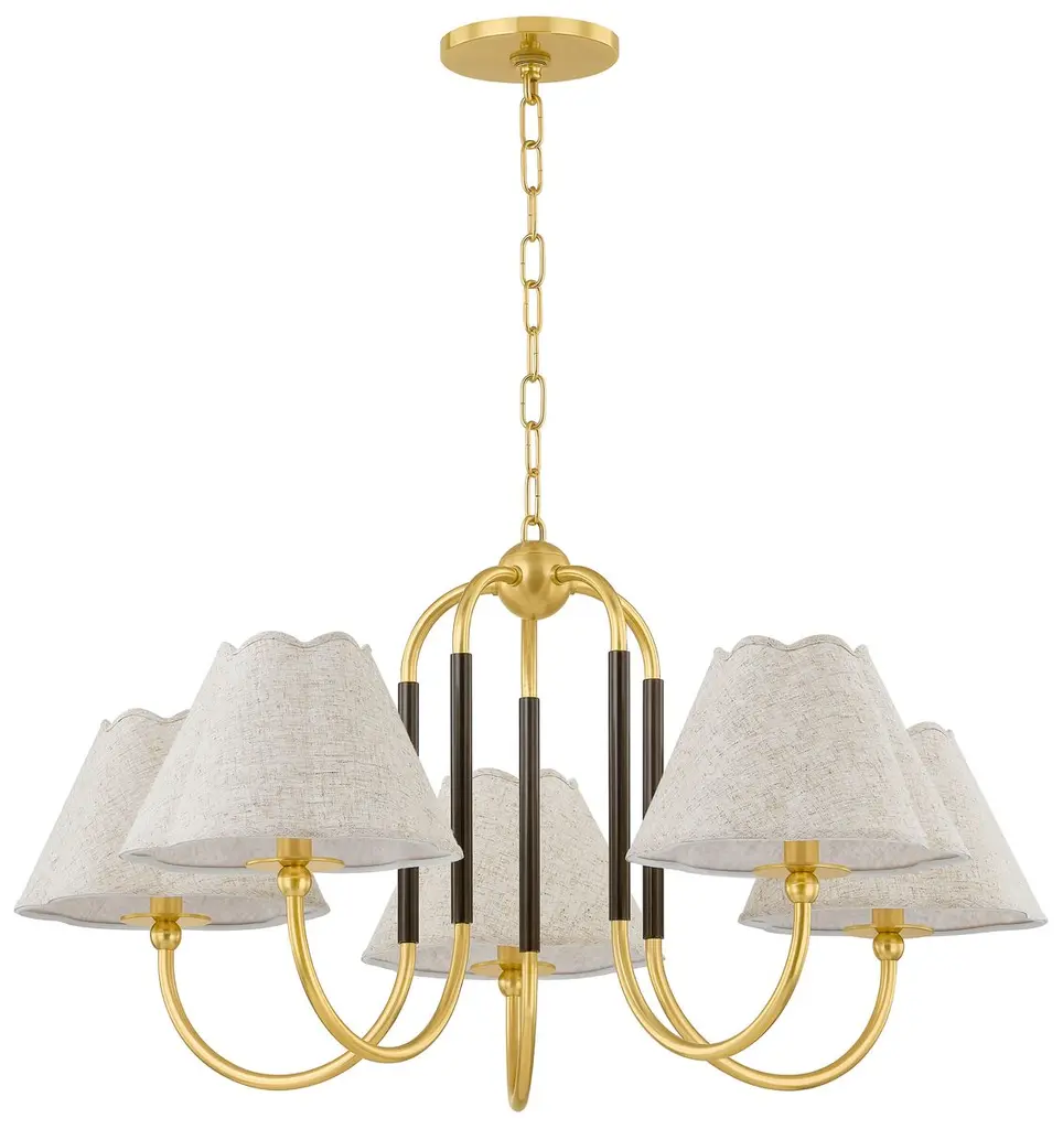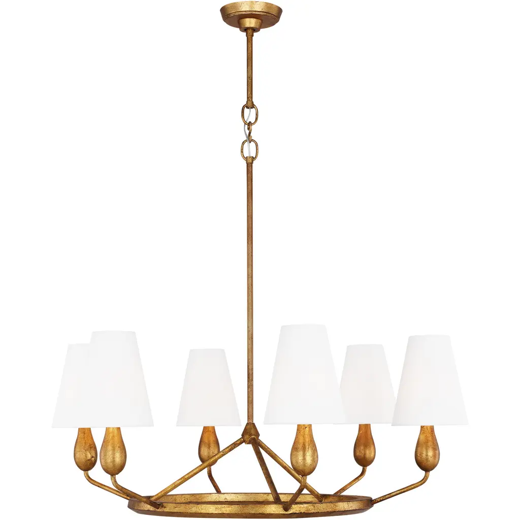 With its botanical influence, the River Reed Chandelier is the ideal fixture for any traditional living space. Six reeded arms reach upward toward shades, joined in the middle of the fixture with two detailed bands. This six-light fixture is suspended on an elegant chain, adorning a room with organic, natural glamour.