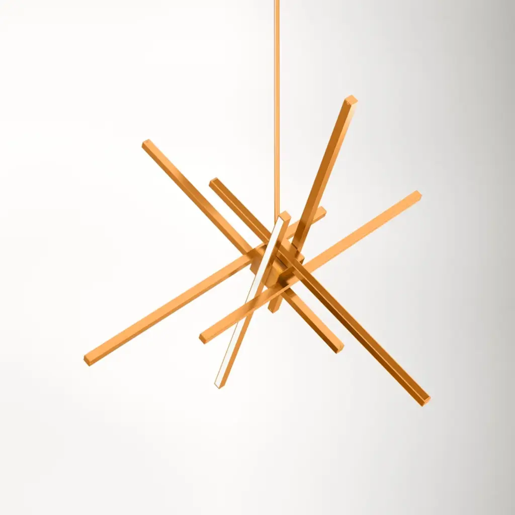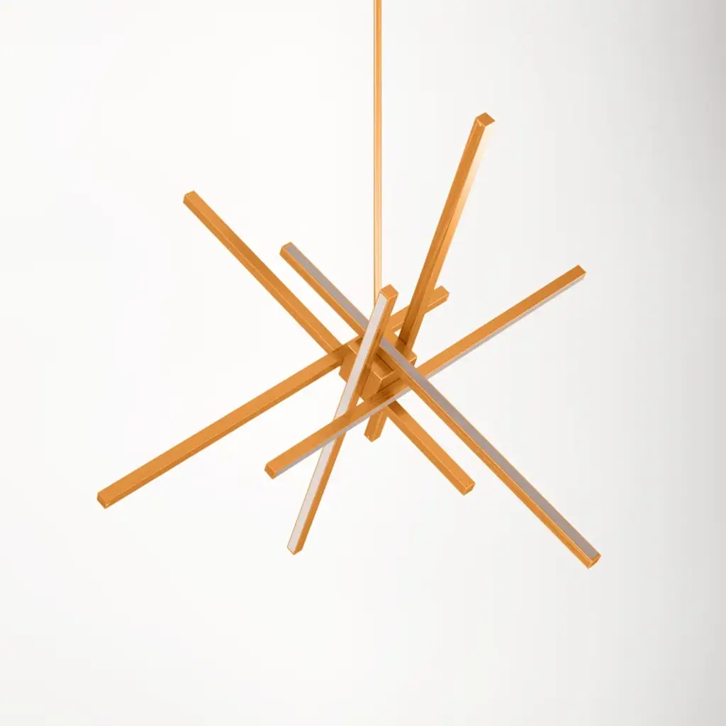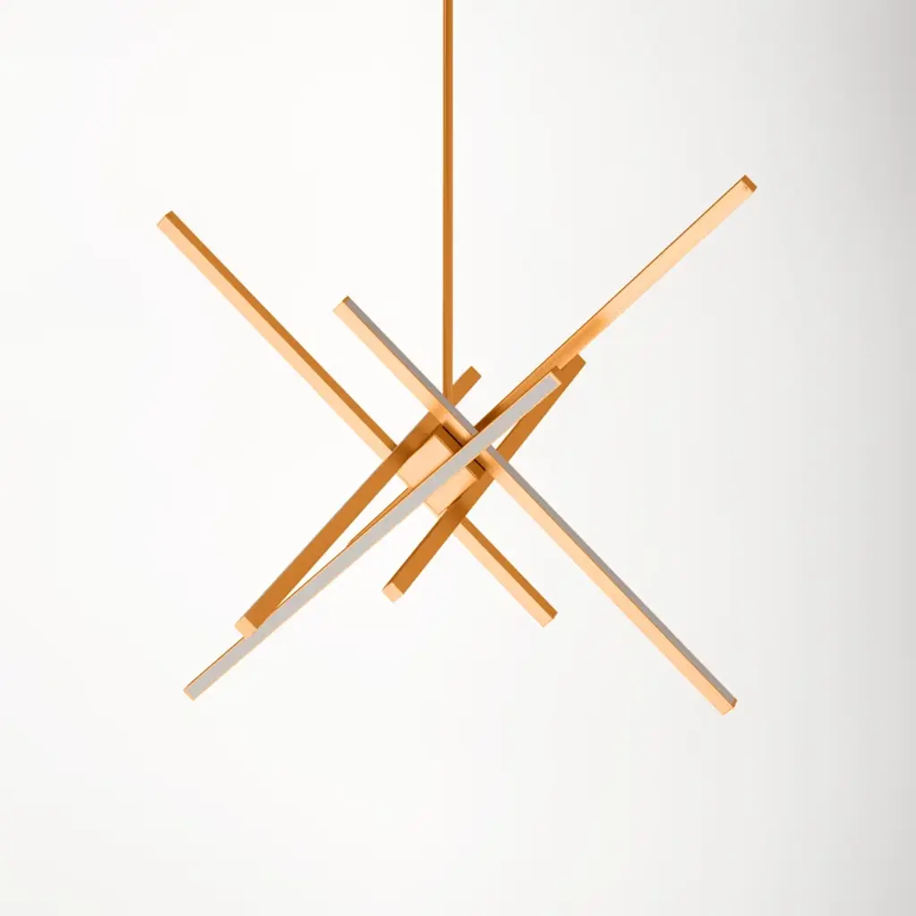 A minimalist take on the sputnik chandelier. This 5-light sputnik sphere pendant makes a statement with its multi-linear sculpted structure. Crafted with white plastic framed in metal, the clean-lined arms double as luminous conduits. Each is illuminated along its entire length with energy-efficient integrated LED light. Plus, these light bars are rotatable for customizable looks and light delivery. This pendant suspends from an aluminum downbar attached to a circular matching canopy. Rated safe for damp locations. Compatible with a dimmer switch.
