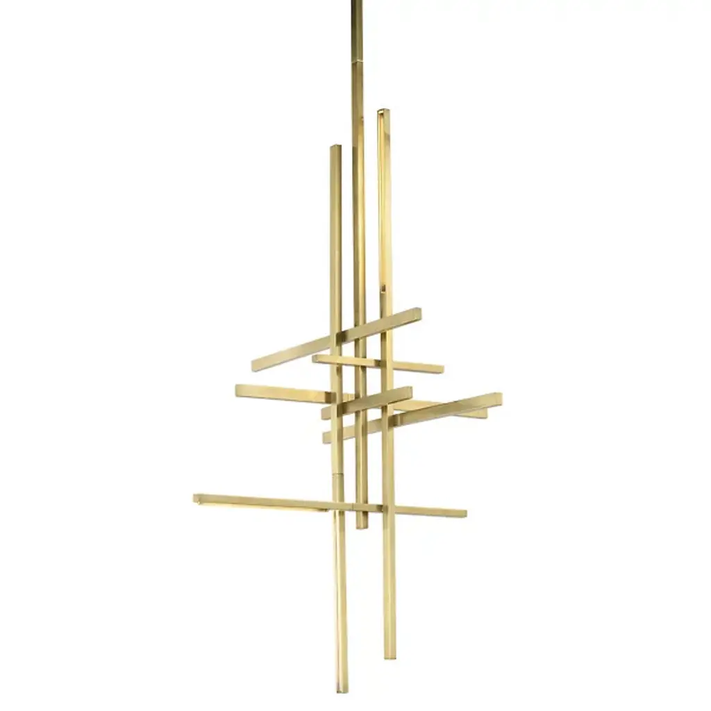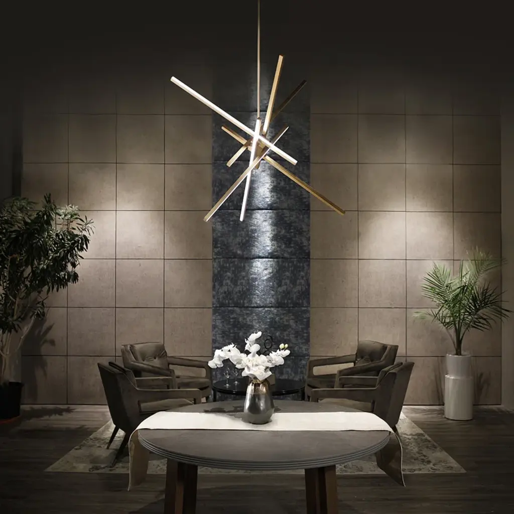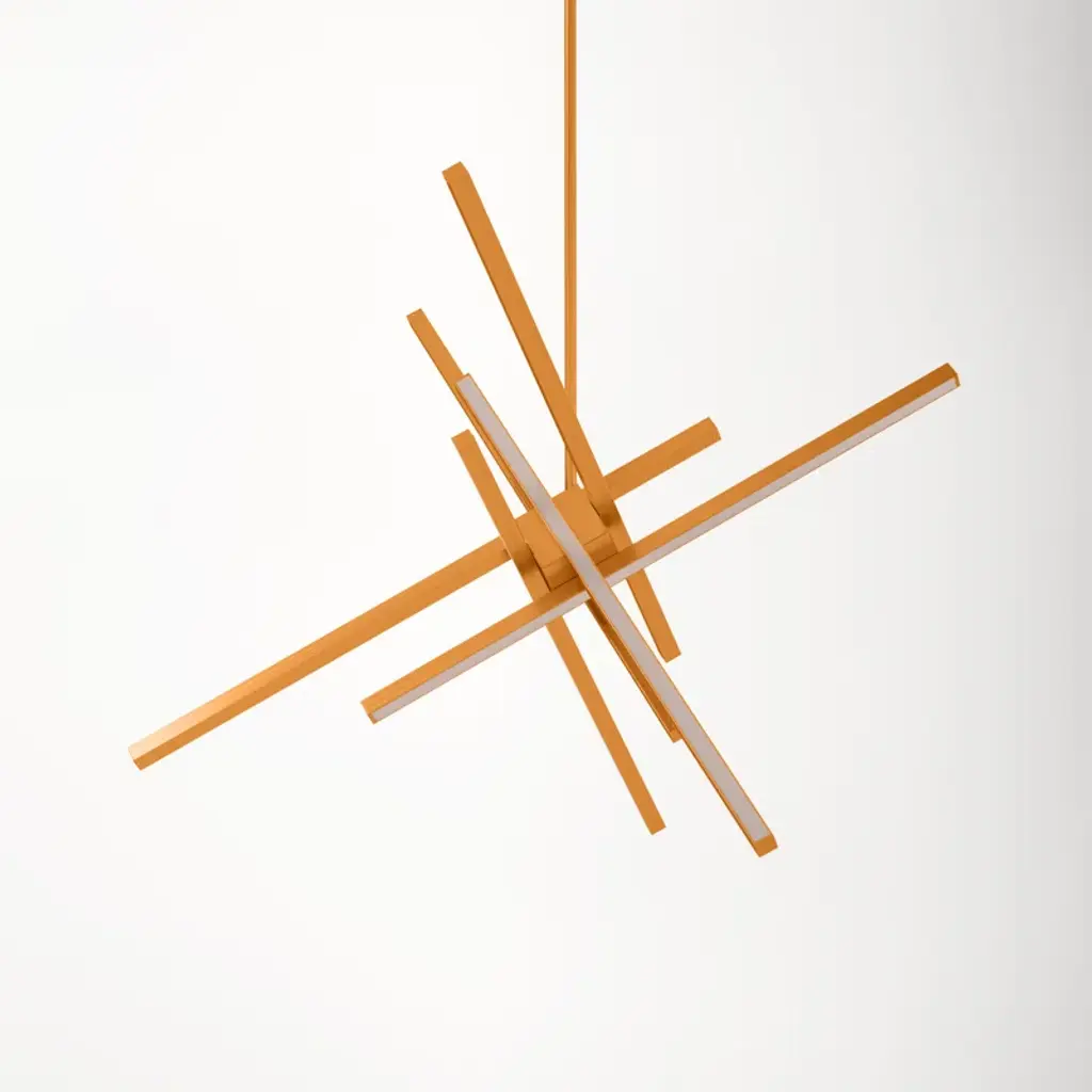 A minimalist take on the sputnik chandelier. This 5-light sputnik sphere pendant makes a statement with its multi-linear sculpted structure. Crafted with white plastic framed in metal, the clean-lined arms double as luminous conduits. Each is illuminated along its entire length with energy-efficient integrated LED light. Plus, these light bars are rotatable for customizable looks and light delivery. This pendant suspends from an aluminum downbar attached to a circular matching canopy. Rated safe for damp locations. Compatible with a dimmer switch.