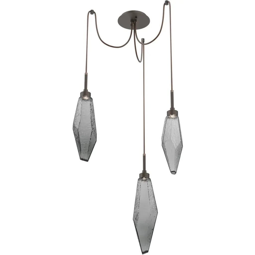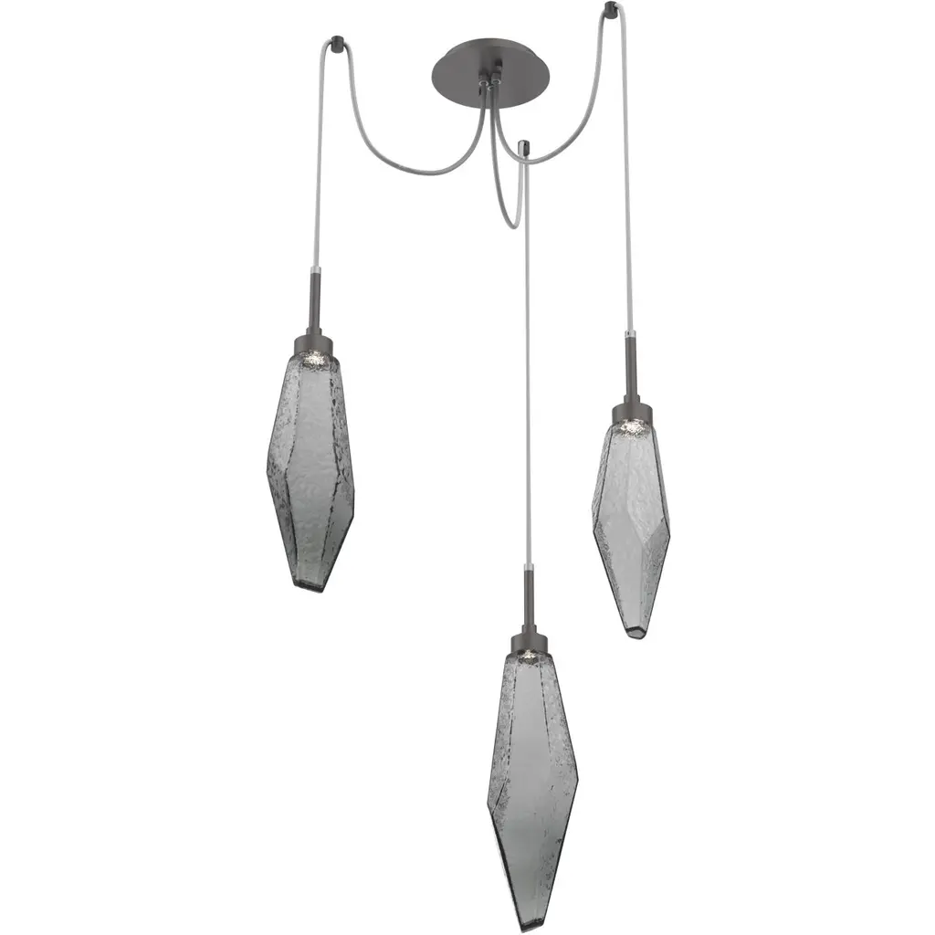 Rock Crystal Round Multi-Port-03-Matte Black-Chilled Blown Glass - Smoke-Black Cloth Braided Cord-LED
