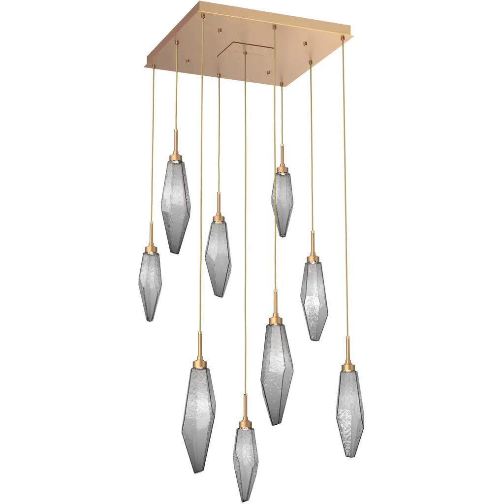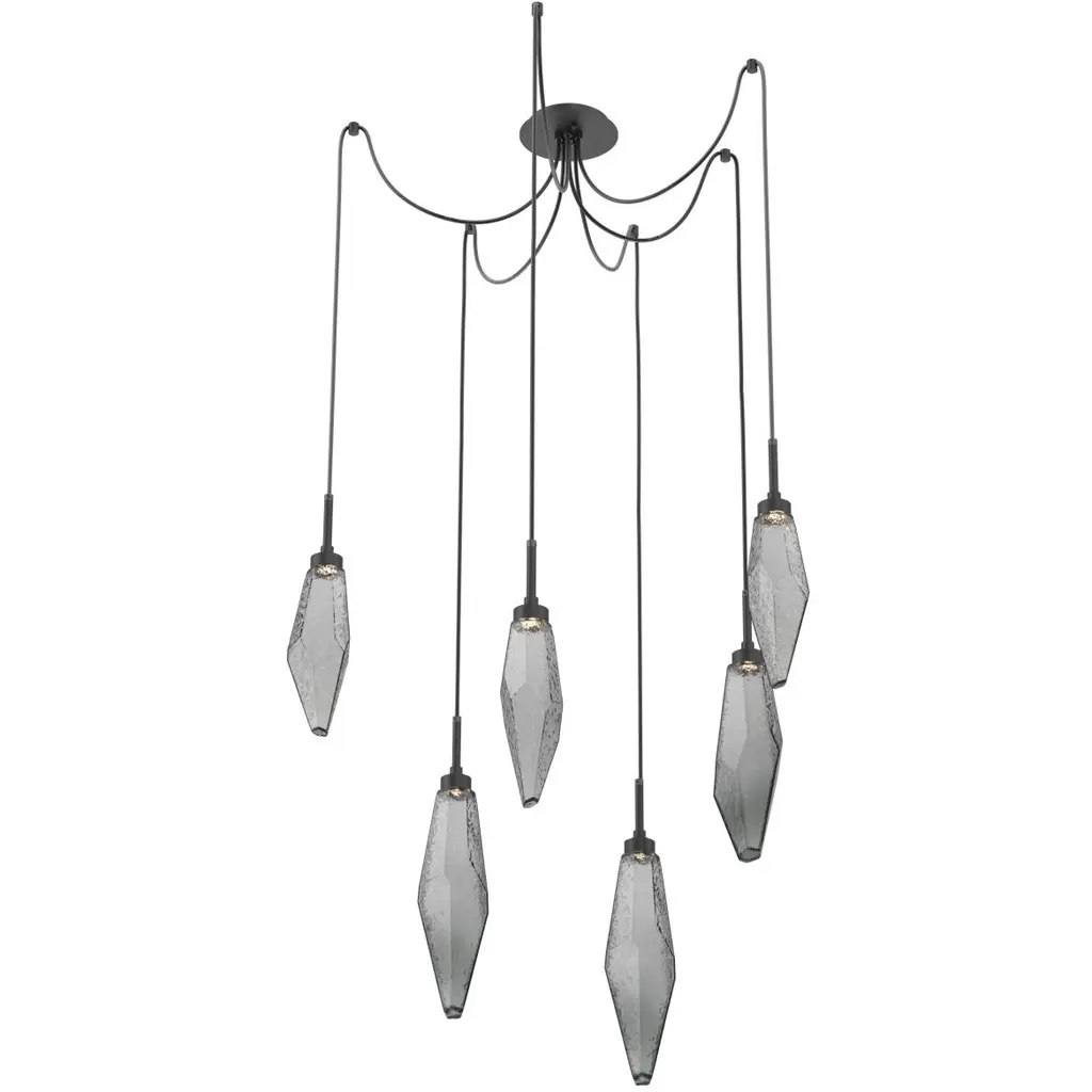 Rock Crystal Square Multi-Port-09-Matte Black-Chilled Blown Glass - Smoke-Black Cloth Braided Cord-LED