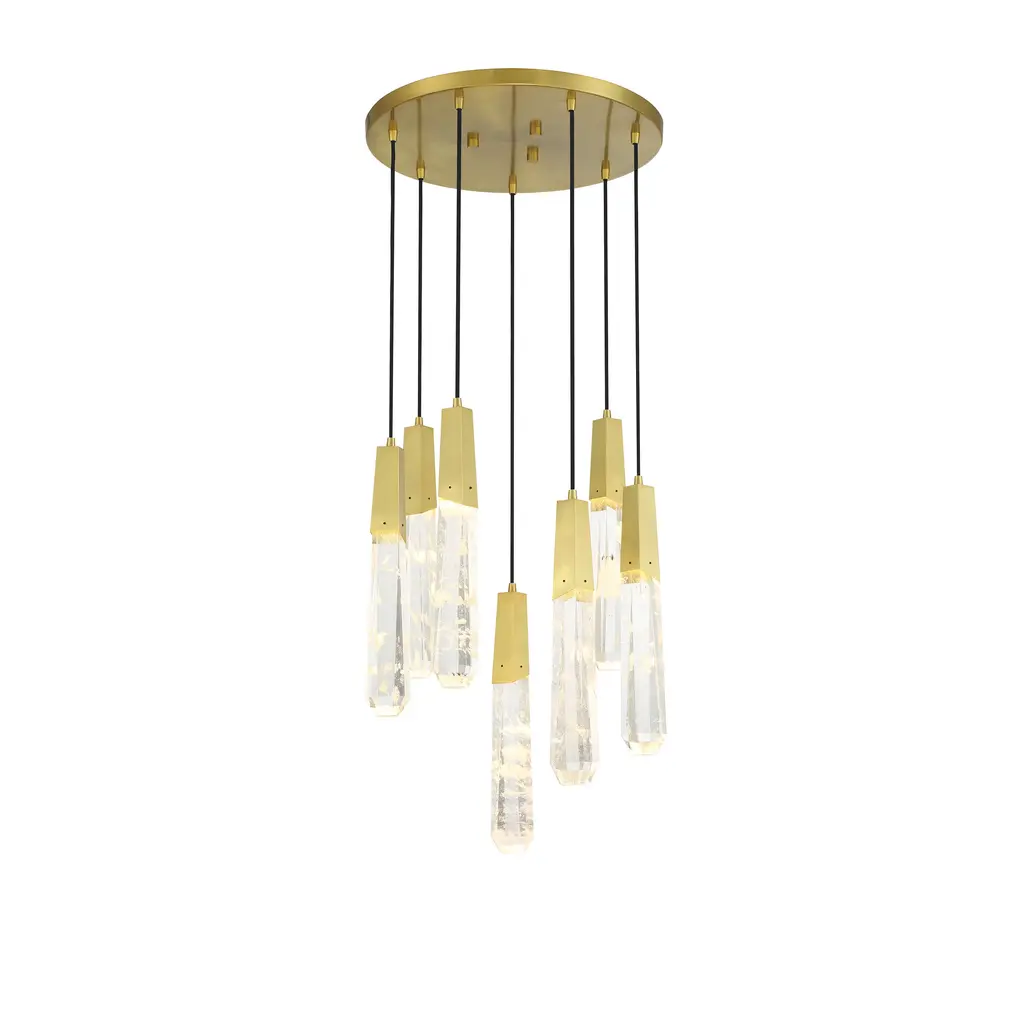 Rock Crystal Led 26.2 Inch Novel Brass Chandelier Ceiling Light In Chilled Smoke, 2700k Led, Round Multi-Port