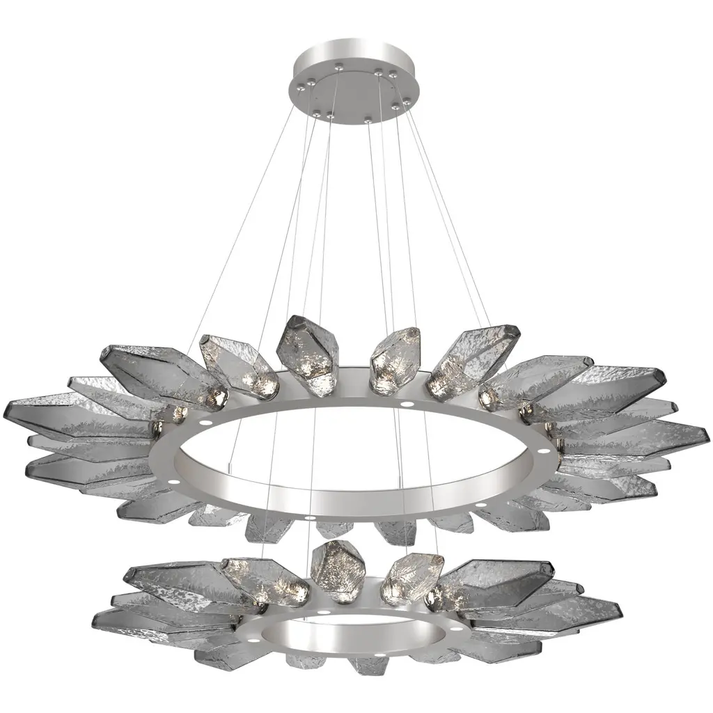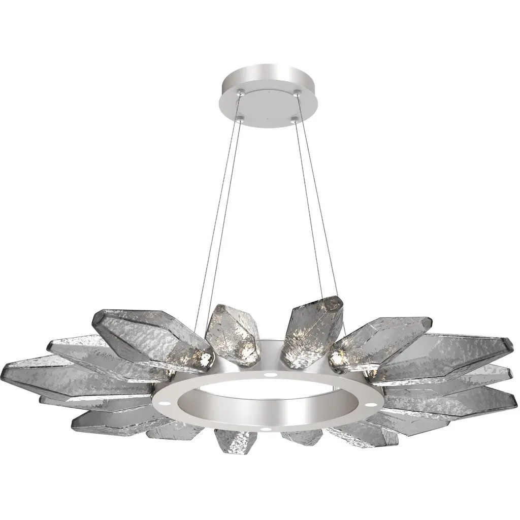 Rock Crystal Radial Ring - 42-Matte Black-Chilled Blown Glass - Smoke-Stainless Steel Cable-LED