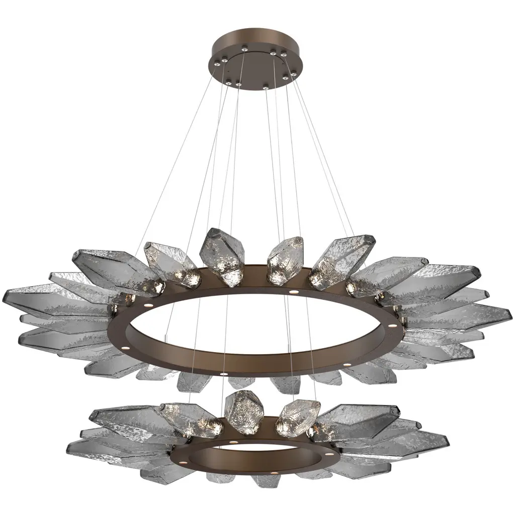 Rock Crystal Radial Ring Two Tier - 42/56-Metallic Beige Silver-Chilled Blown Glass - Smoke-Stainless Steel Cable-LED