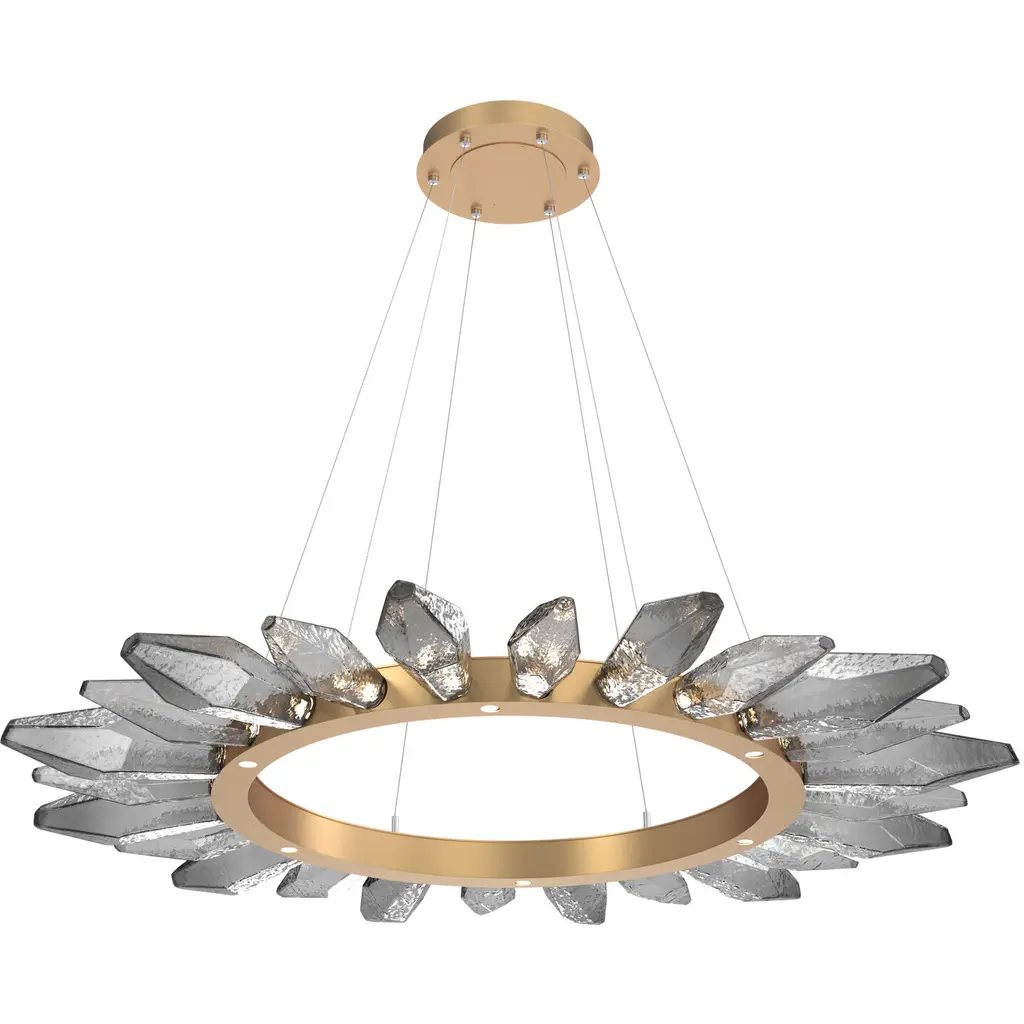 Rock Crystal Radial Ring - 56-Burnished Bronze-Chilled Blown Glass - Smoke-Stainless Steel Cable-LED