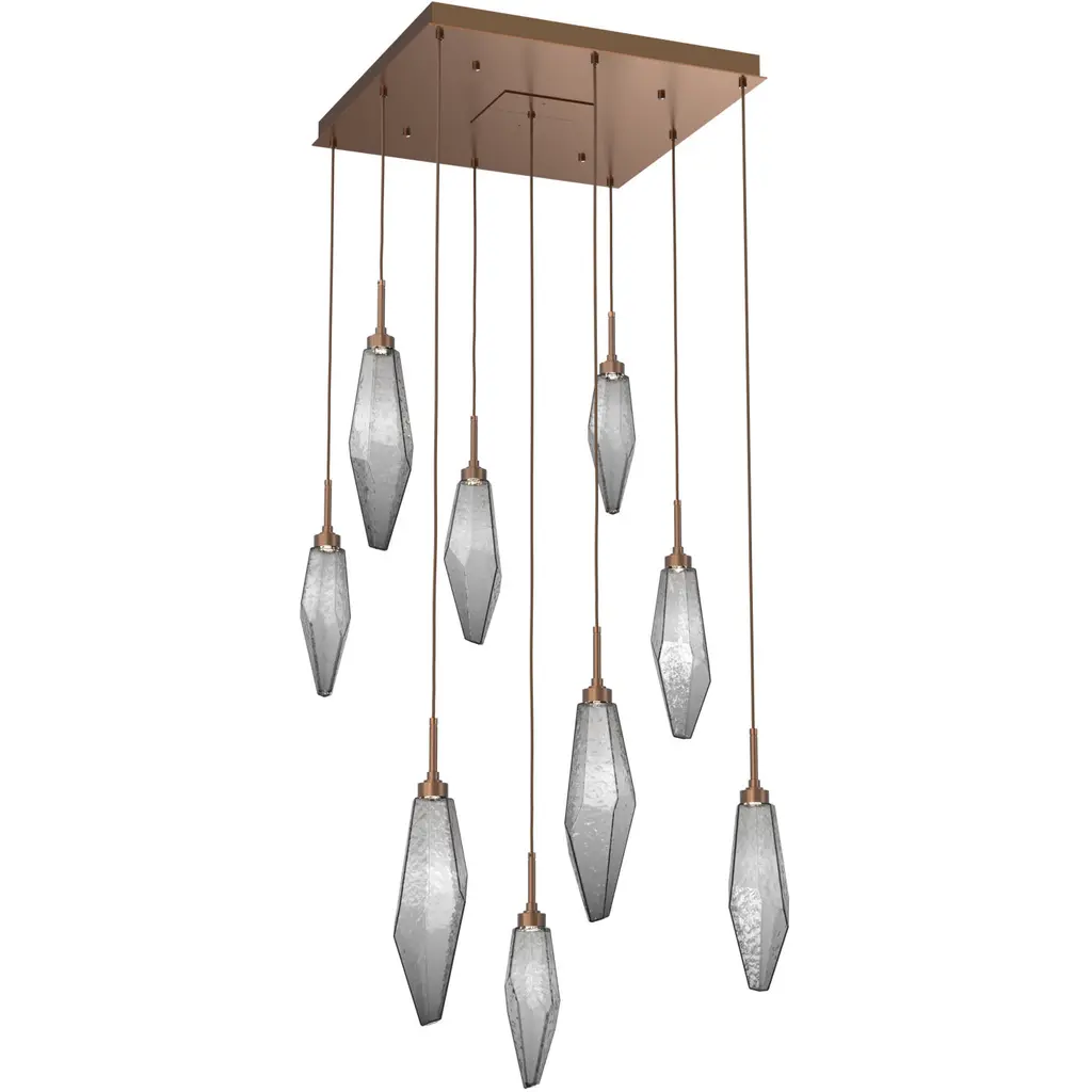 Rock Crystal Square Multi-Port-12-Burnished Bronze-Chilled Blown Glass - Smoke-Bronze Cloth Braided Cord-LED