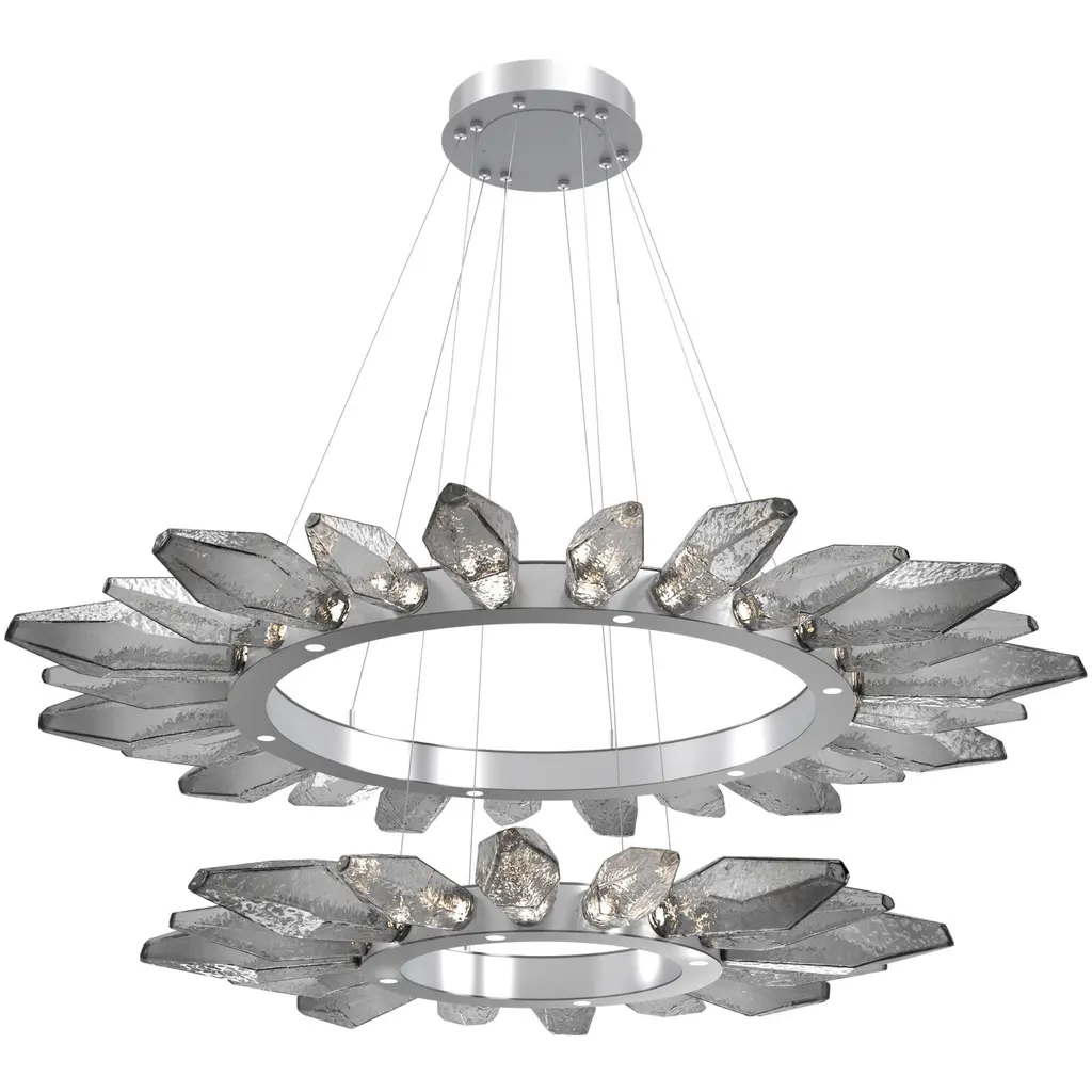 Rock Crystal Radial Ring - 56-Classic Silver-Chilled Blown Glass - Smoke-Stainless Steel Cable-LED
