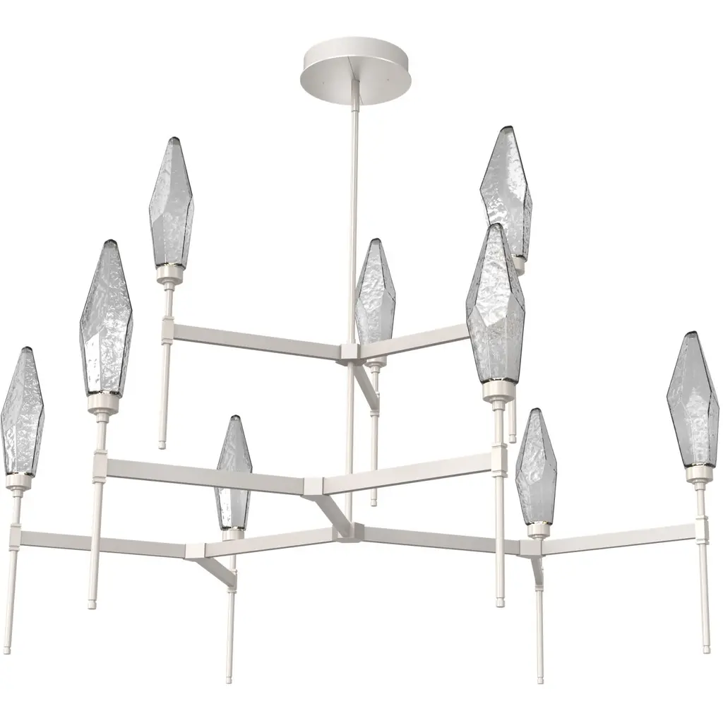 Rock Crystal Round Chandelier-54-Classic Silver-Chilled Blown Glass - Smoke-Threaded Rod Suspension-LED