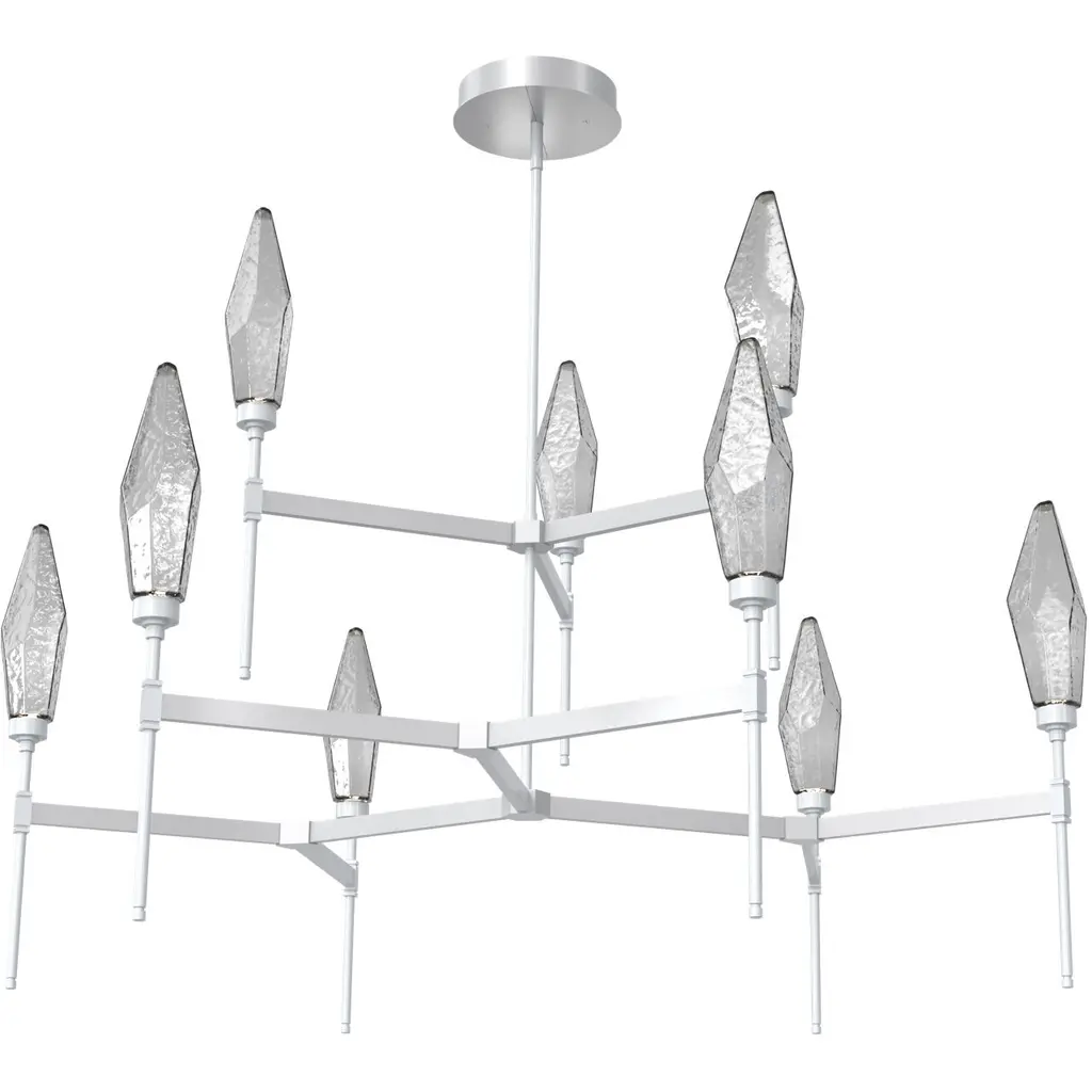 Rock Crystal Round Chandelier-54-Graphite-Chilled Blown Glass - Smoke-Threaded Rod Suspension-LED