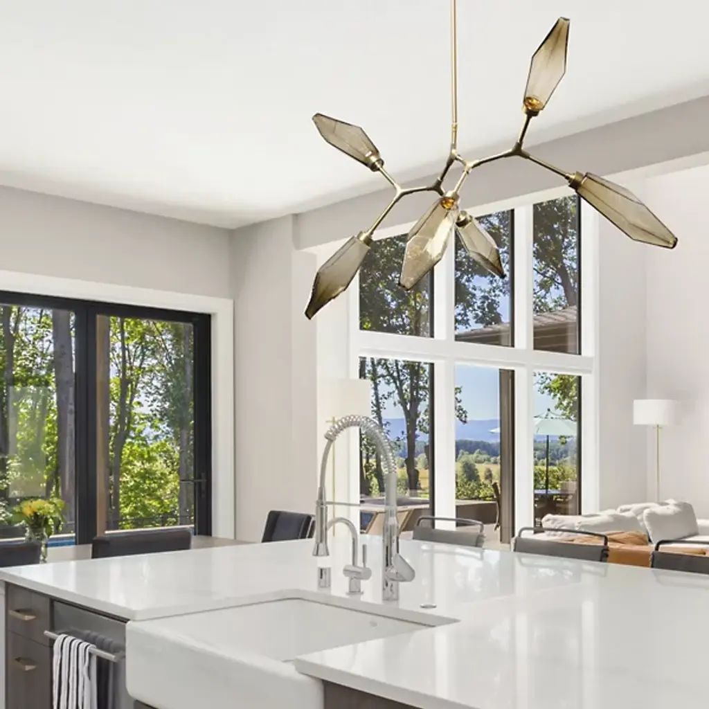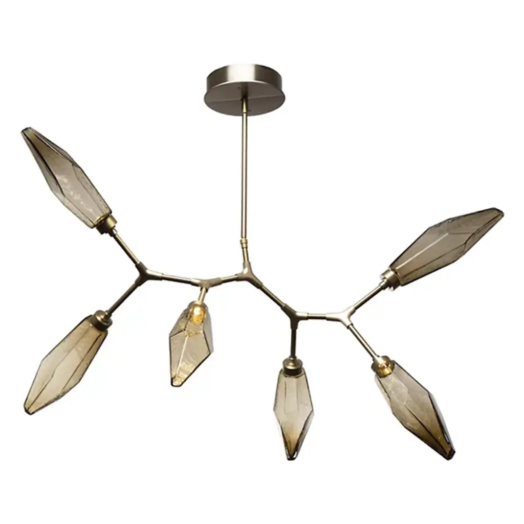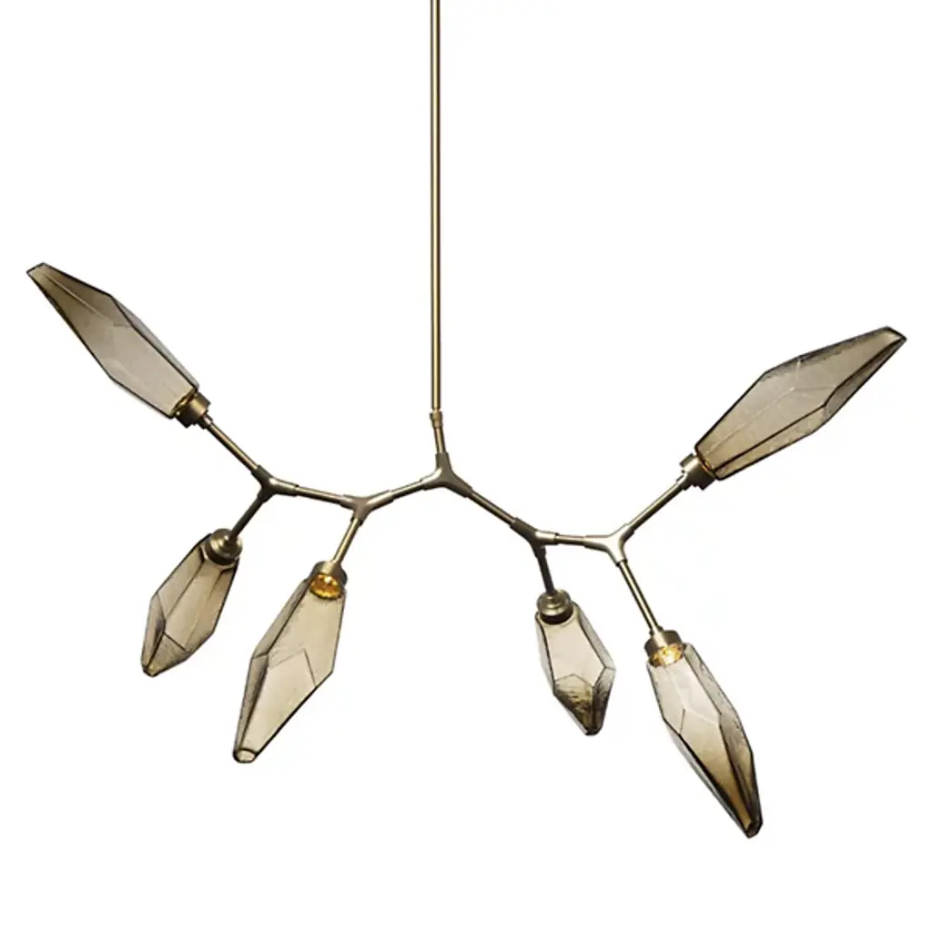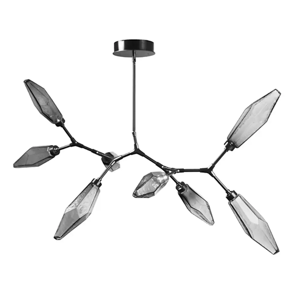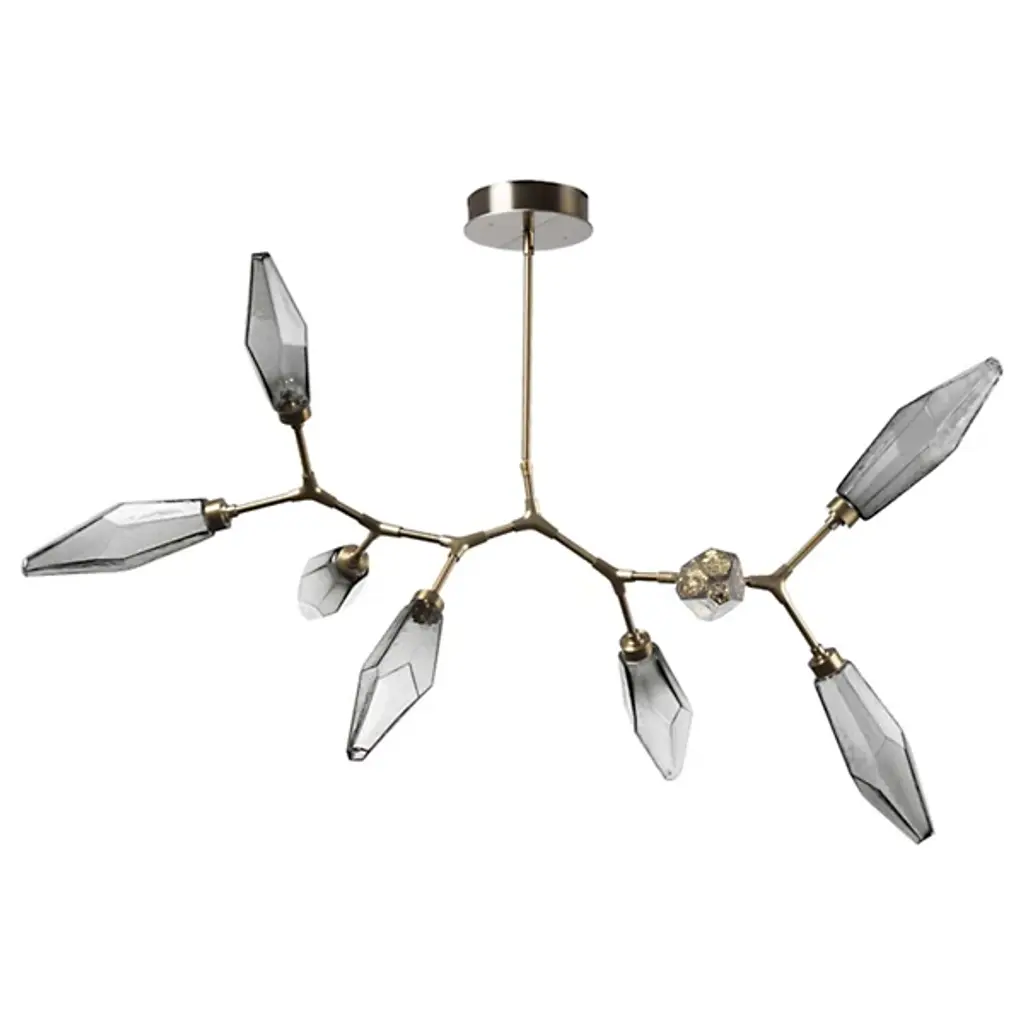 A bold, artisanal design that evokes natural forms, the Rock Crystal Modern Branch LED Chandelier from Hammerton Studio brings the organic qualities of shining crystal formations into the heart of your home. A thin, branching body splits into stem-like arms, each ending with a handblown glass formation reminiscent of quartz. The shades contain integrated, energy-efficient LEDs for an eye-catching, inviting glow that enhances the ambiance of the space and showcases the precise craftsmanship of each piece.