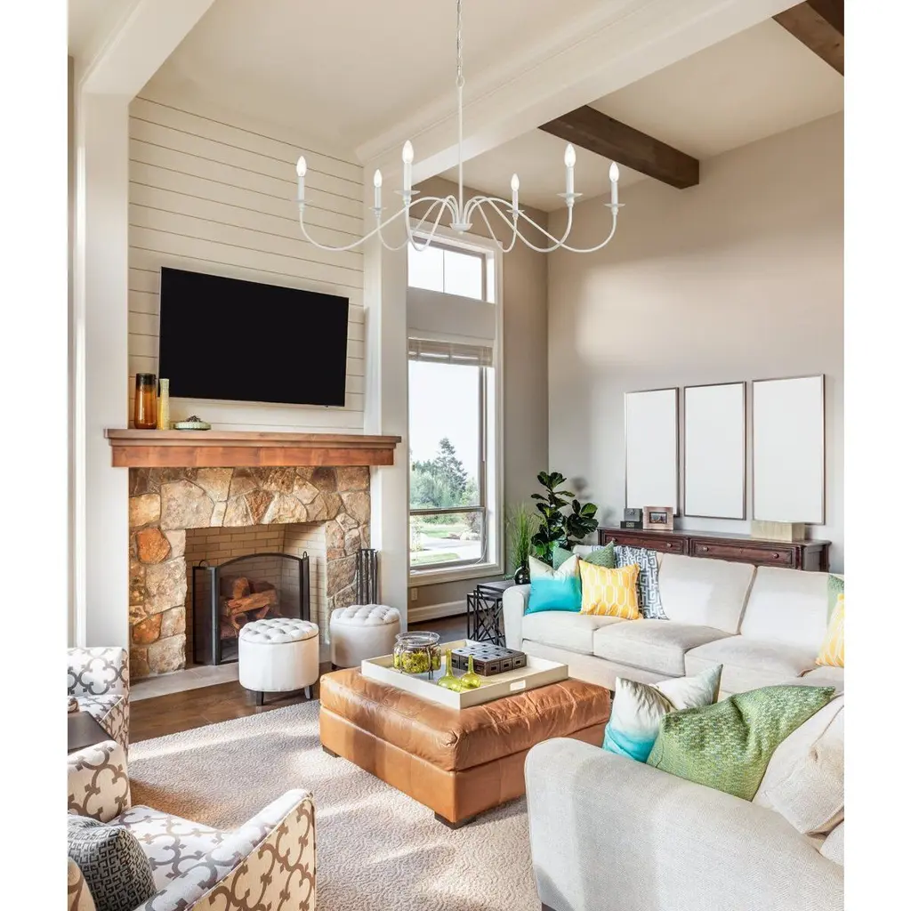 Illuminate your home with the enchanting brilliance of our Indoor Iron 6 Arm Chandelier. This exquisite piece is not just a source of light; it's a statement of elegance and style. The chandelier's dimmable feature allows you to create the perfect ambiance for any occasion, whether it's a romantic dinner or a lively get-together. With a 60-inch matching finish chain included, installation is a breeze, adding convenience to its list of selling points. Versatility is at the heart of this chandelier, as it seamlessly complements various rooms, from grand dining areas to cozy living spaces and captivating foyers. Designed for E12 bulbs, this chandelier accommodates six of them, providing ample illumination throughout the room. Please note that bulbs are not included, allowing you to personalize the lighting experience to your preference. Elevate your interior décor and bask in the captivating radiance of our chandelier that comes in various sizes and finishes.