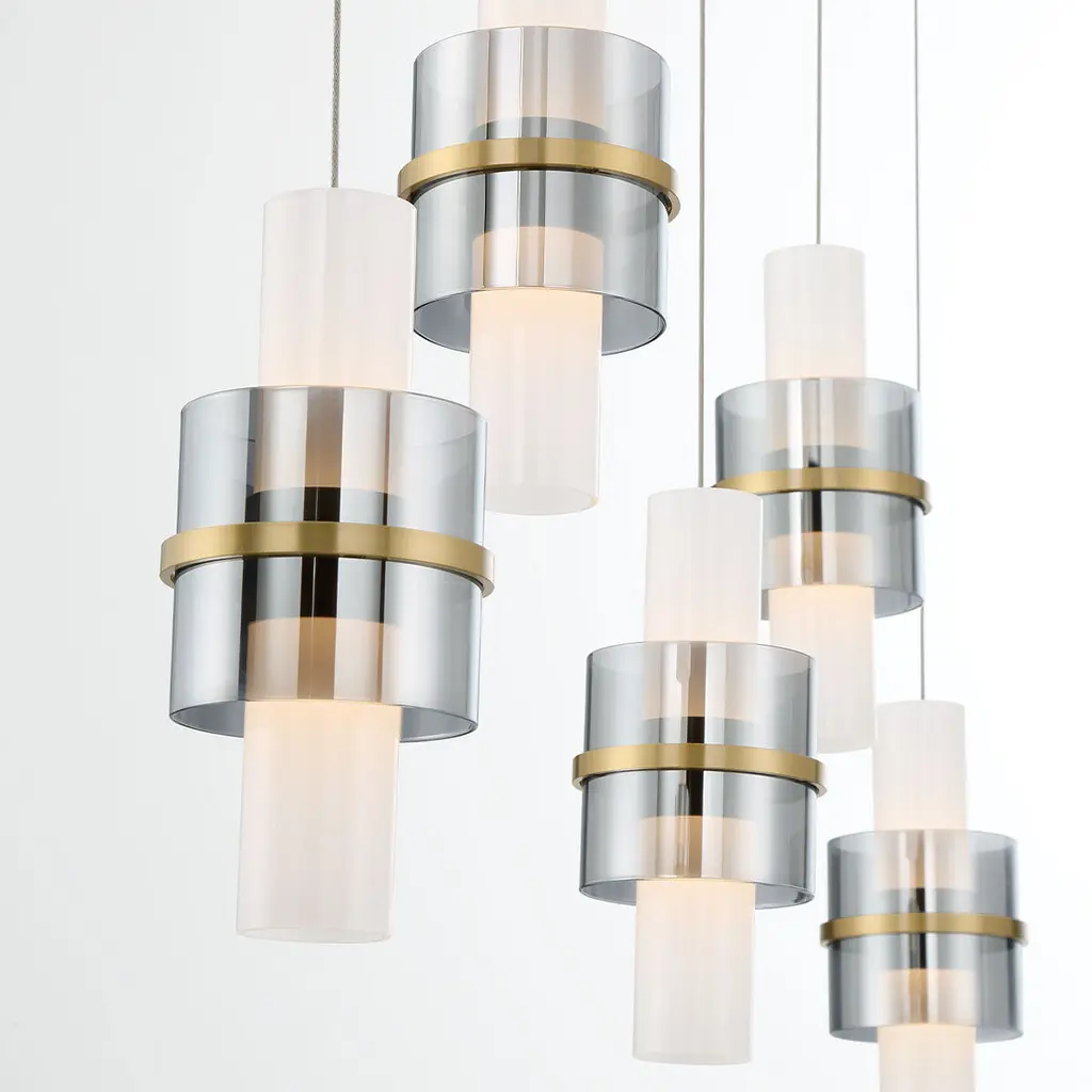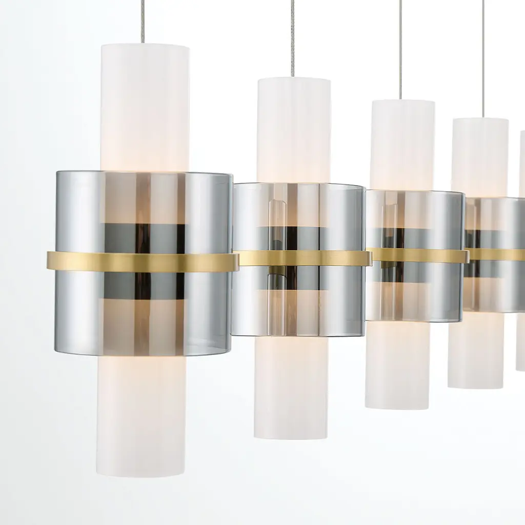 As on a newlyweds hand, a simple wedding band of brushed gold gracefully surrounds smoke glass which itself is wrapped around an illuminated white acrylic. The exploration of modern round themes will excite and invigorate contemporary interiors.