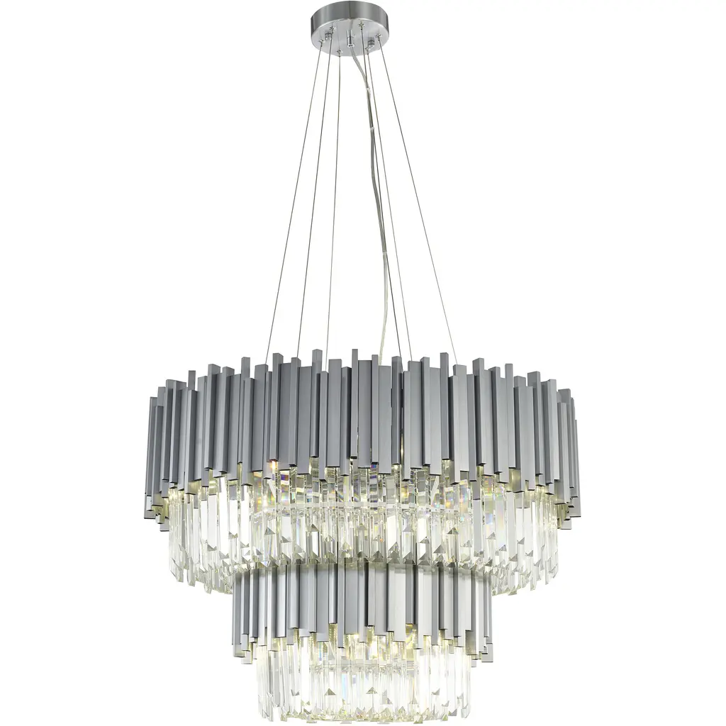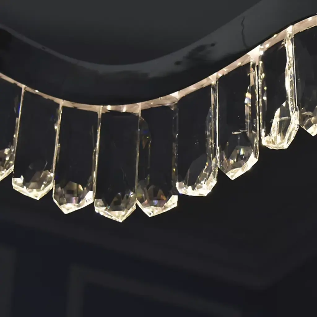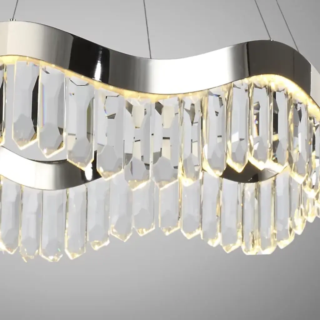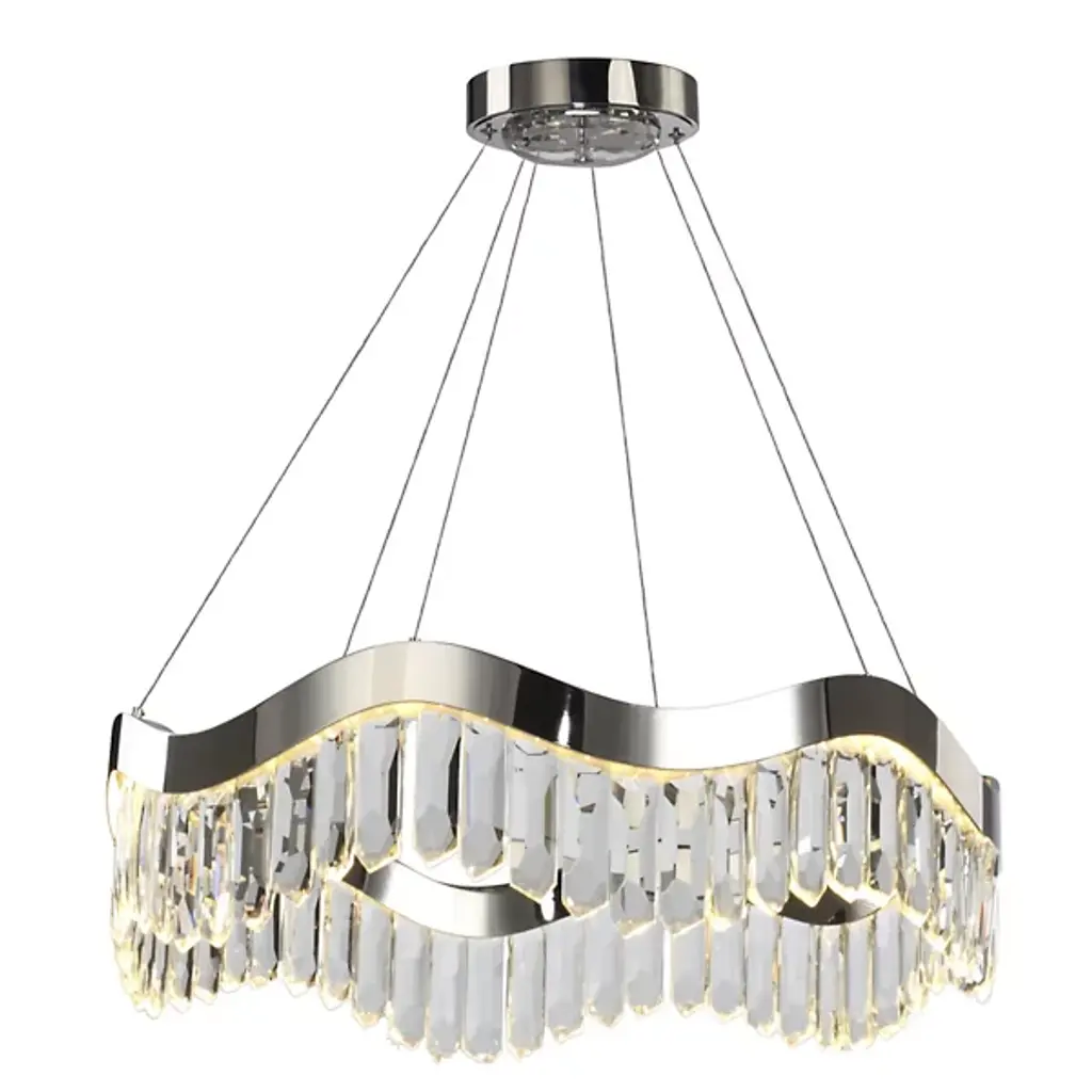 The Rolland LED Chandelier from Studio M creates a soothing mood like a calm set of waves and a rich visual like the paint-filled bristles of an artist’s paintbrush. It takes contemporary design to inventive heights. The chandelier gives off a floating quality with a fine wire suspension. Its steel framework sets the calming wave silhouette with a sleek finish while carrying an array of LEDs inside. K9 crystal forms line up under the framework with an array of facets that display fascinating refractive notes and highlights. The LED passes through the crystals like a shower to surround the room below with a pleasant warmth.