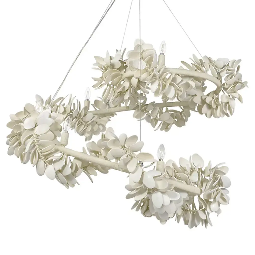The Roma Chandelier from Palecek is a mesmerizing combination of nature-inspired design and Bohemian style. Built with attention to detail, this exceptional light fixture features hand-cut petals made from coco shells, creating a captivating visual impact. Roma boasts a single-tier design, allowing its beauty to shine through. The candelabra-style lighting, powered by efficient LEDs, casts a gentle glow, adding a touch of enchantment. Set the mood with a separately sold ELV dimmer.
