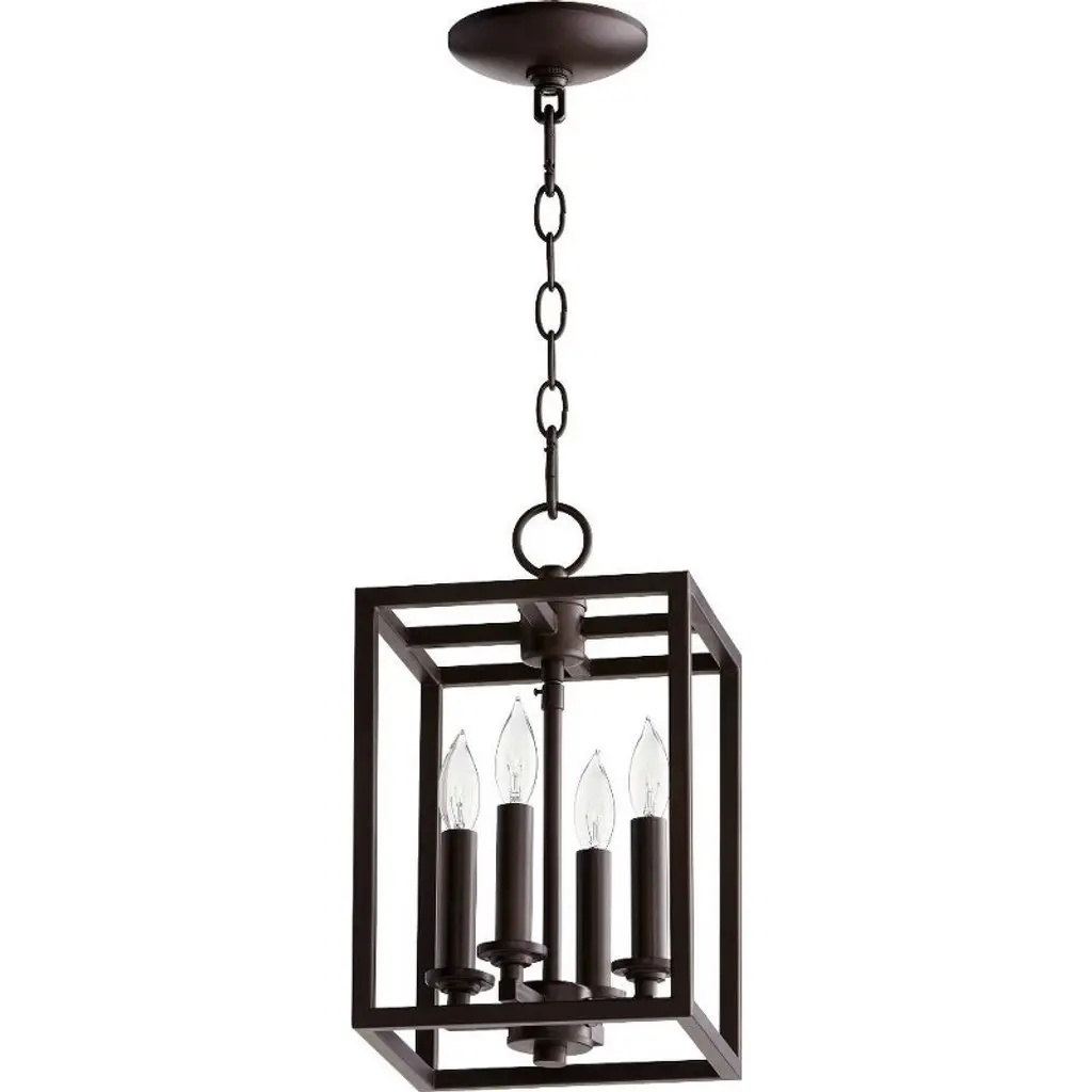 Simple design can offer a touch of whimsy, as seen in the Rossington Chandelier by Quorum International. Smooth metal arms form a drum-shaped frame around a series of candles, while vertical bars enclose the fixture. Conjuring the look of a classic carousel, this chandelier is suspended from a circular canopy and chain, with a tapered top adding to its character. Effortlessly balancing playful and elegant, this fixture illuminates while offering a delightful decorative accent.