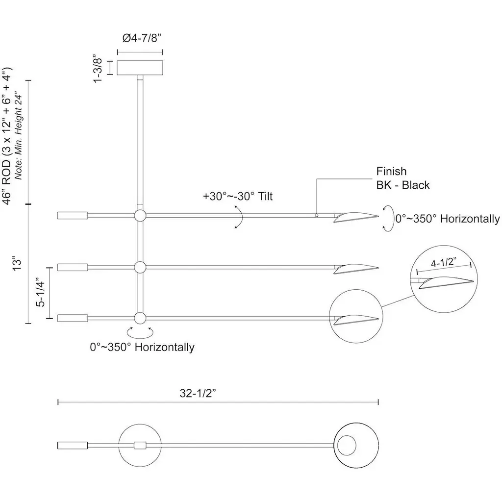 Rotaire Led 32.5 Inch Black Chandelier Ceiling Light