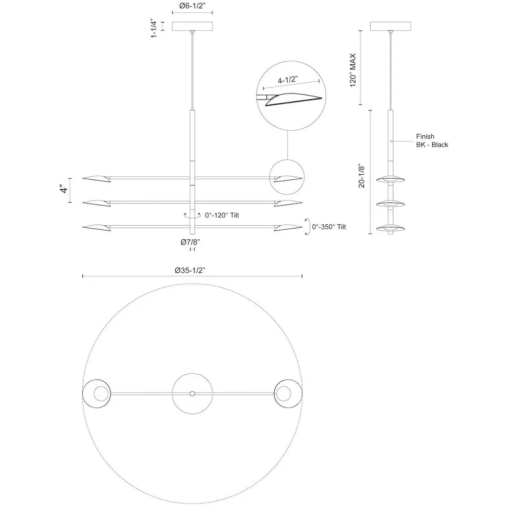 Rotaire Led 35.5 Inch Black Chandelier Ceiling Light